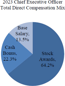 | ● | An initial grant of time-vesting restricted stock having a value equal to $160,000; |