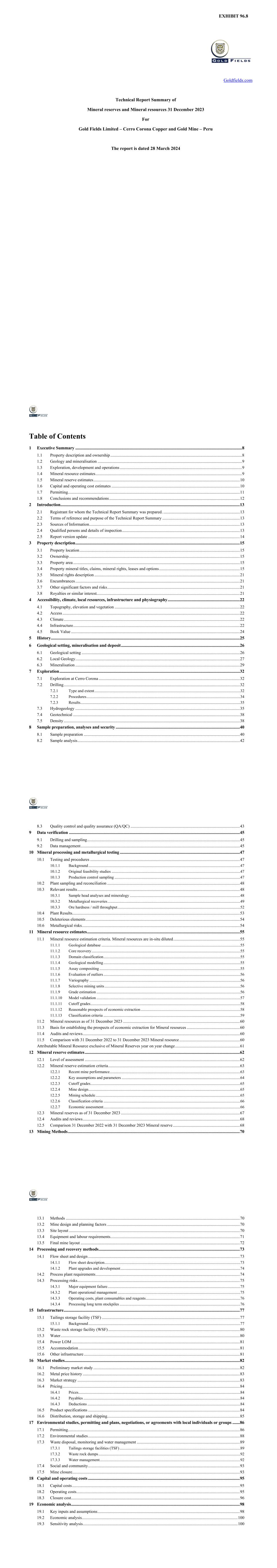 This Form 6-K includes the exhibit containing the Technical Report Summary for Gold Fields Limited's ("Gold Fields") material mining property in South America (Cerro Corona Copper and Gold Mine) pursuant to Subpart 1300 of Regulation S-K under the Securities Act of 1933. The exhibit is filed herewith in order to be incorporated by reference into Gold Fields’ annual report on Form 20-F for the year ended 31 December 2023.