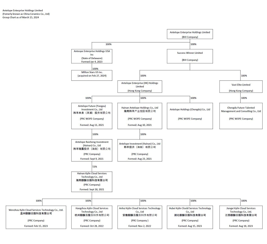 The following diagram illustrates the Company’s corporate structure upon closing of the acquisition of Million Star: