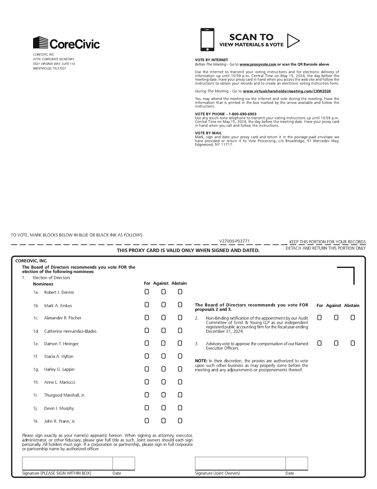 We will hold a question-and-answer session following the formal business portion of the meeting during which shareholders may submit questions to us. If you would like to submit a question during the virtual Annual Meeting, once you have logged into the webcast at www.virtualshareholdermeeting.com/CXW2024, simply type your question in the “ask a question” box and click “submit.” We will answer as many questions submitted in accordance with the rules of conduct for the virtual Annual Meeting as possible in the time allotted for the virtual Annual Meeting.