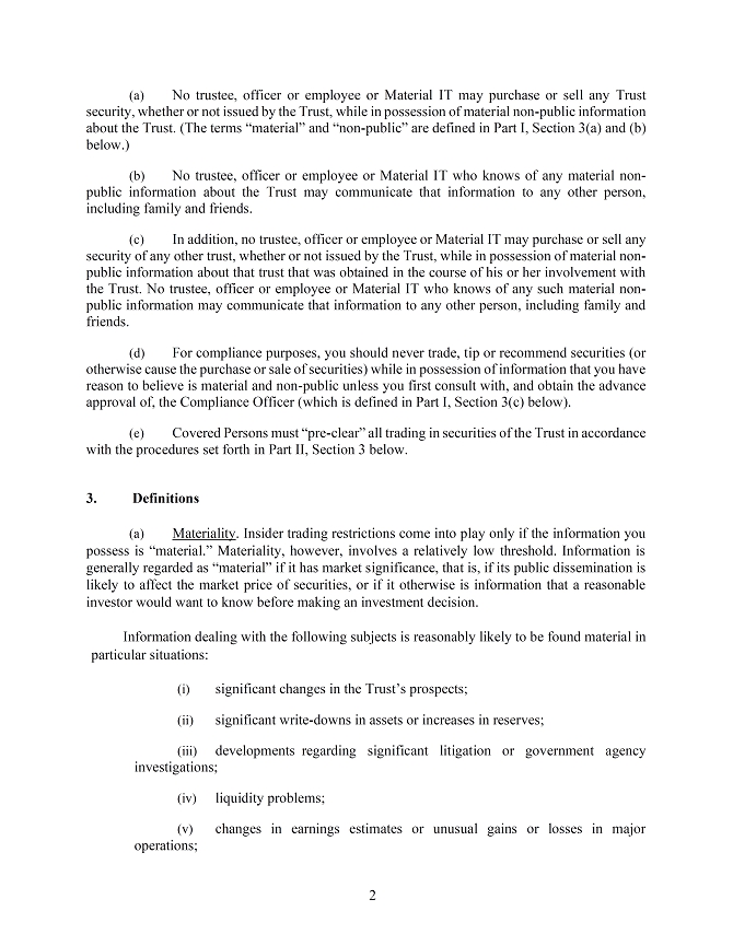 During 2023, the Trust recorded approximately $ of non-cash expense related to restricted stock and approximately $ of non-cash expense related to options granted compared to approximately $ of non-cash expense related to restricted stock and $ non-cash expense related to options granted for 2022. As of December 31, 2023, there was approximately $ of total unrecognized share-based compensation expense for restricted stock and approximately $ of total unrecognized share-based compensation expense for options, which will be recognized through the third quarter of 2025. The Trust does not currently have a policy regarding the repurchase of shares on the open market related to equity awards.