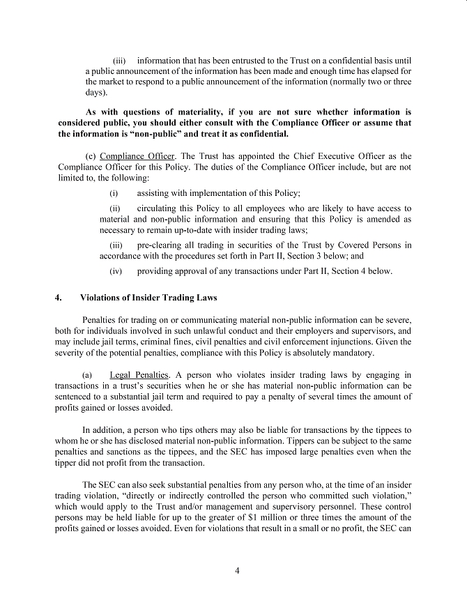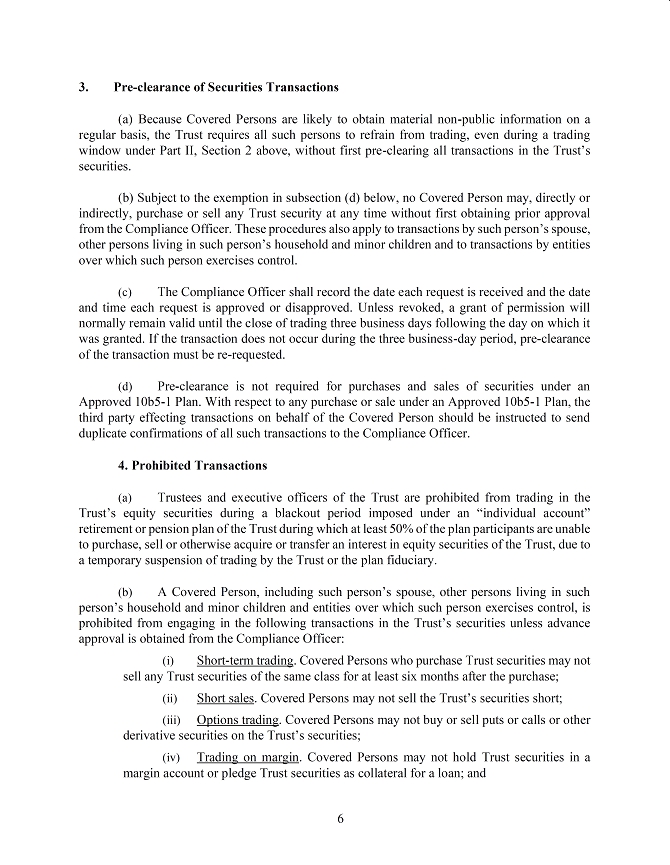 Trust is organized as a Maryland-domiciled real estate investment trust and has elected to be treated under the Internal Revenue Code