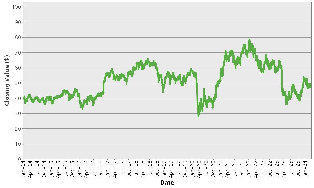 SPDR® S&P® Regional Banking ETF – Historical Closing Values