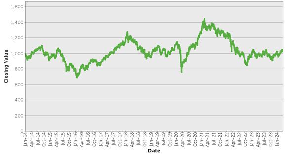 | MSCI Emerging Markets Index – Historical Closing Values January 2, 2014 to March 27, 2024 |