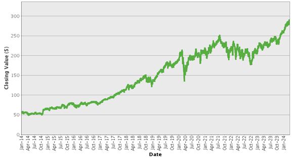 | Visa Inc. – Historical Closing Values January 2, 2014 to March 27, 2024 |