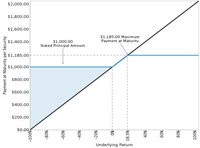 | Maximum return at maturity: | $185.00 per security (18.50% of the stated principal amount). The payment at maturity per security will not exceed the stated principal amount plus the maximum return at maturity. | ||