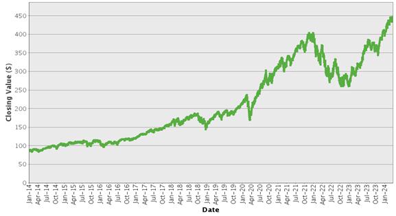 The graph below shows the closing value of the Invesco QQQ TrustSM, Series 1 for each day such value was available from January 2, 2014 to March 27, 2024. We obtained the closing values from Bloomberg L.P., without independent verification. You should not take historical closing values as an indication of future performance.