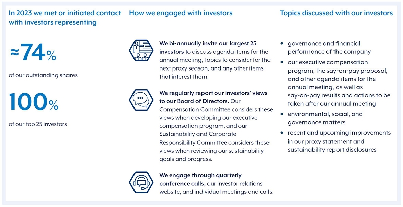 That includes fostering connections with all of you. Transparency with our stockholders and other stakeholders is fundamental to our corporate governance practices. We value your views and encourage you to vote. You may do so promptly via phone or internet, or you may mail your completed and signed voting card.