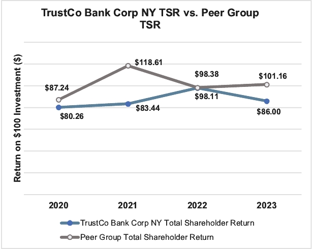 The Board Compliance Committee held 12 meetings in 2023. The directors currently serving on the Board Compliance Committee are Dr. Anthony J. Marinello (Chair), Dr. Steffani Cotugno, Brian C. Flynn, Lisa M. Lucarelli, Thomas O. Maggs, Curtis N. Powell, Kimberly A. Russell, and Frank B. Silverman. The functions of the Compliance Committee are to provide assistance to the board in fulfilling its oversight responsibility relating to compliance with legal and regulatory requirements and Trustco Bank’s policies, including overseeing Trustco Bank’s communications with the federal banking agencies and other governmental authorities with jurisdiction over TrustCo and Trustco Bank.