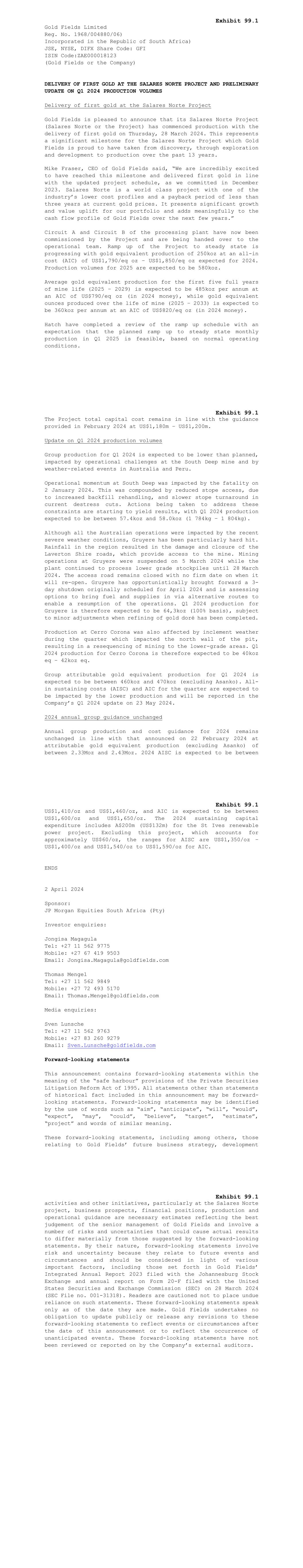 | Gold Fields Limited |