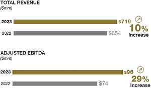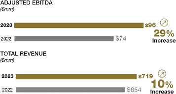 At the business level, our architectural building products segment, Arcadia Products (“Arcadia”), reported sales of $298.9 million. While Arcadia’s sales were flat versus 2022, the business launched a series of growth-focused initiatives designed to expand manufacturing capacity, integrate new business management systems and improve operational efficiencies. Arcadia reported full-year adjusted EBITDA attributable to DMC of $29.8 million, up 6% from 2022.