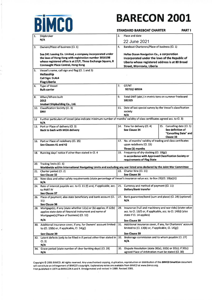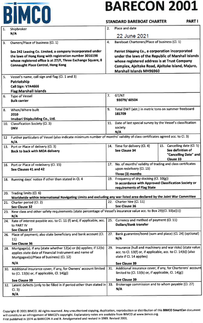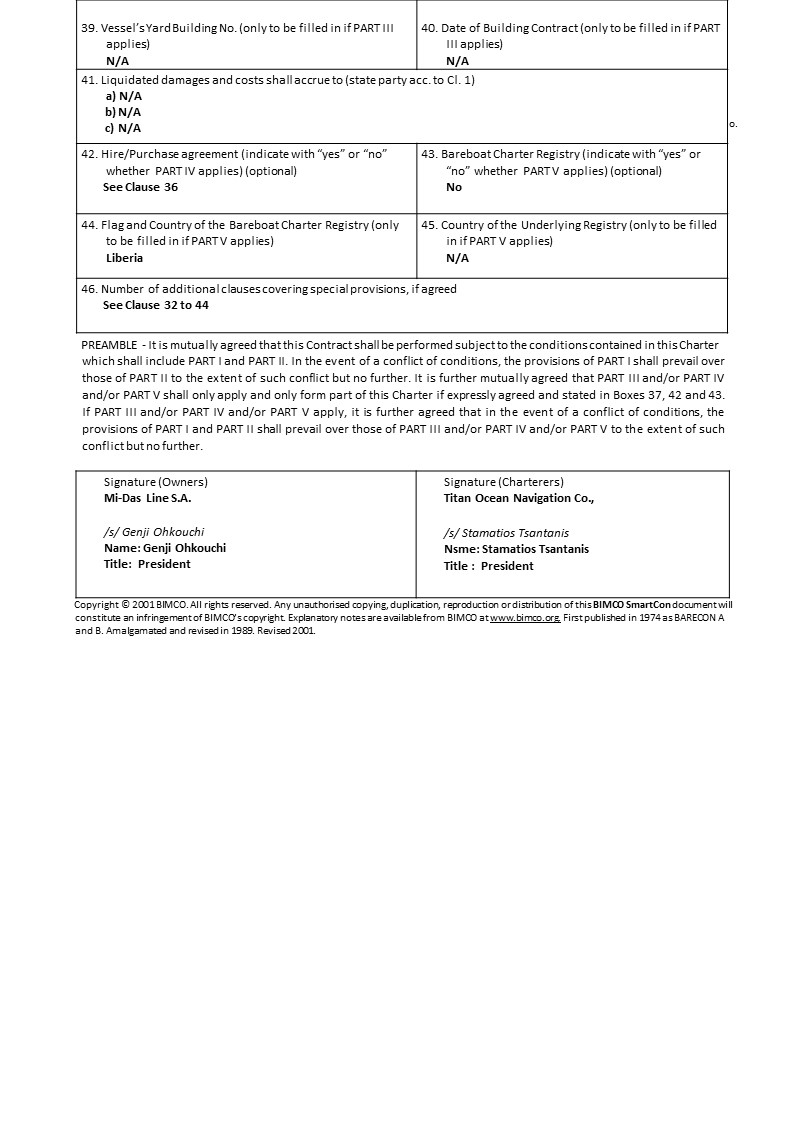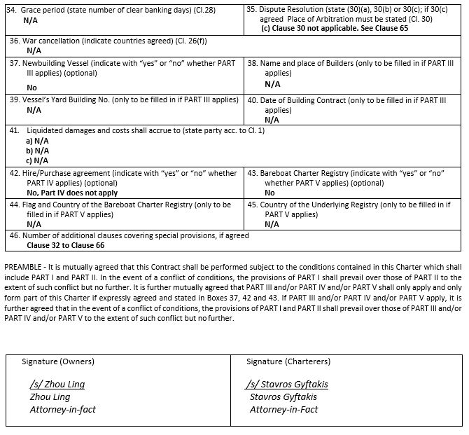Commercial Management Agreement of [ ] and made between (1) United Management Corp. (the “Company”) and Seanergy Management Corp. (the “Commercial Manager”) |