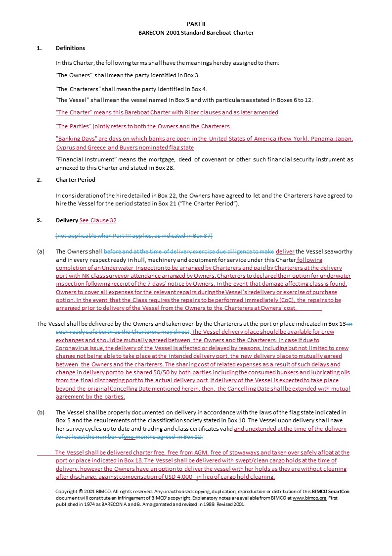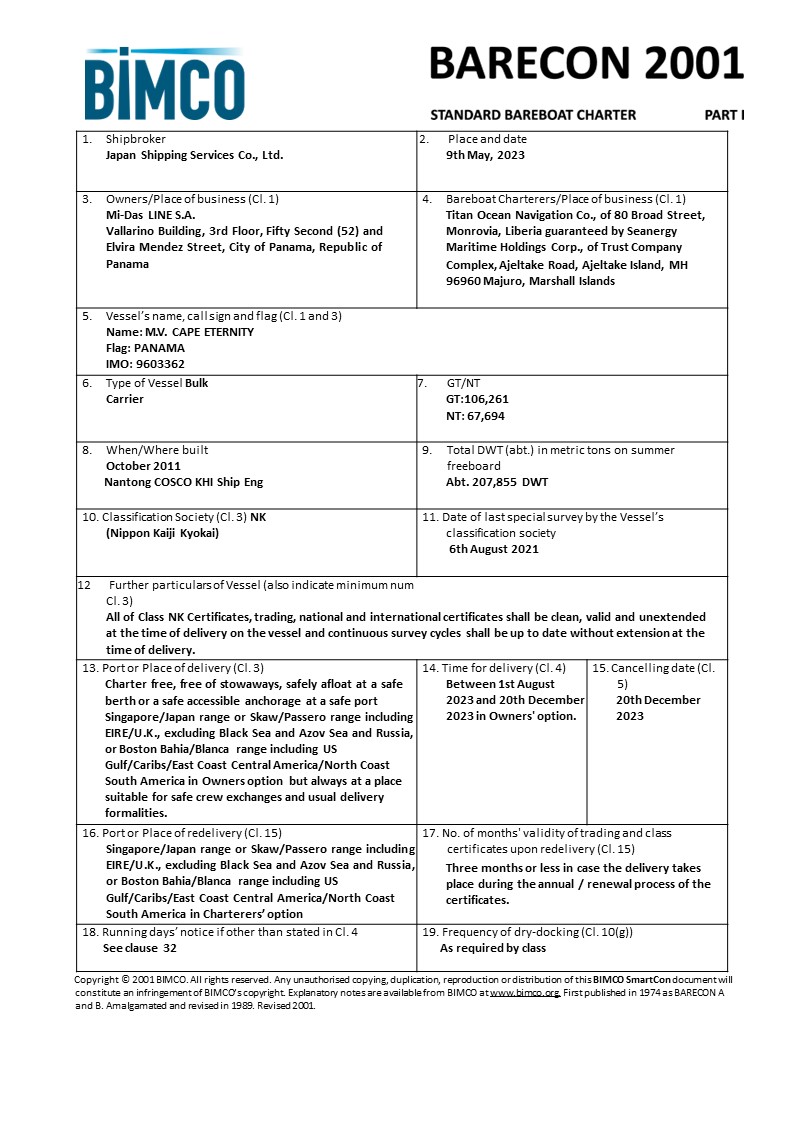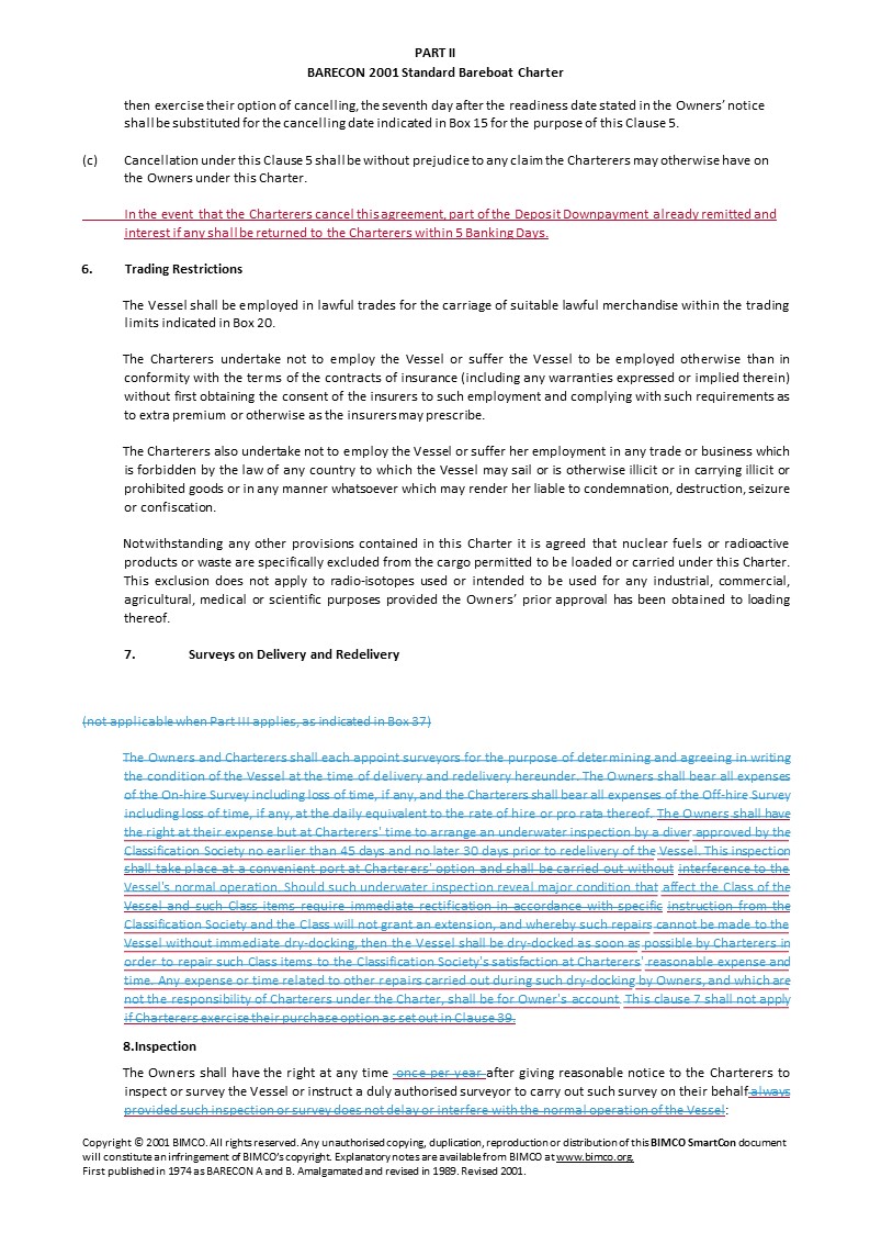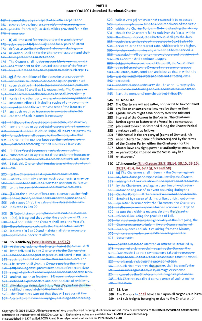 The gain or loss of a significant charterer.
