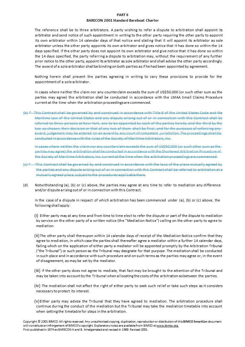 Arbitration shall be conducted in accordance with the London Maritime Arbitrators Association (LMAA) rules current at the time of commencement of the arbitration.