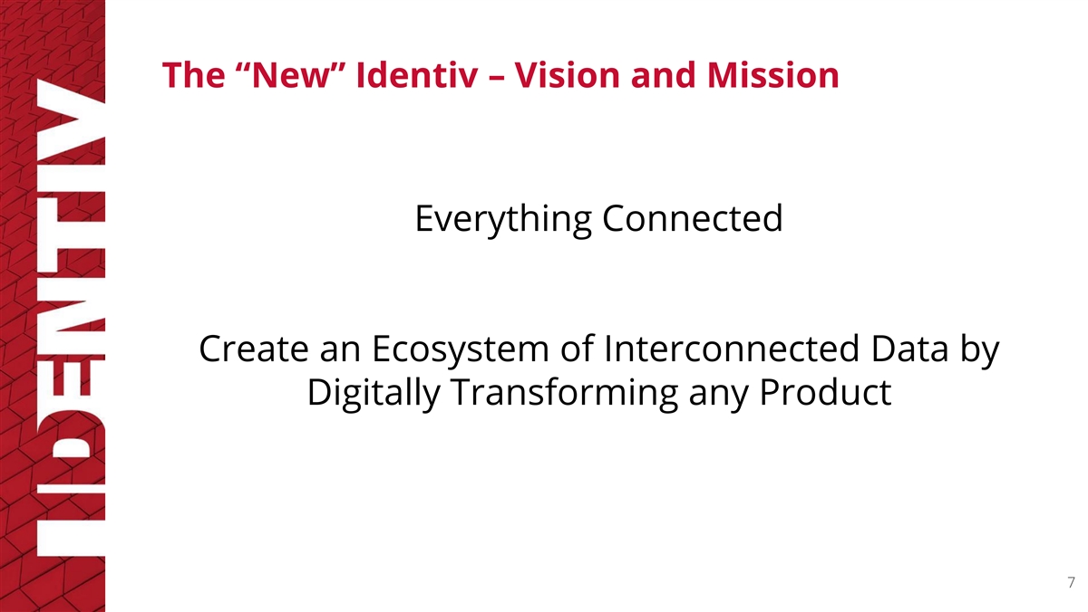The “New” Identiv – Vision and Mission Everything Connected Create an Ecosystem of Interconnected Data by Digitally Transforming any Product 7