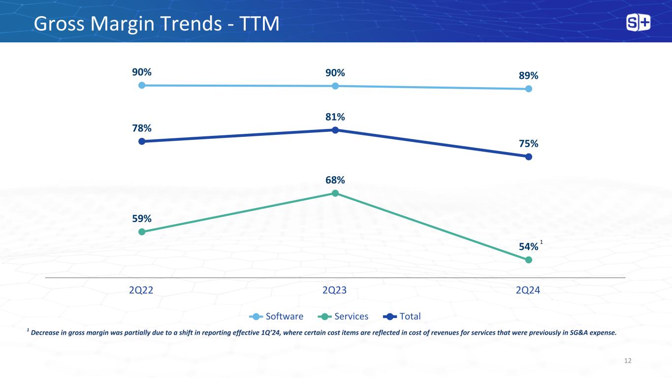 Gross Margin Trends - TTM 12 90% 90% 89% 59% 68% 54% 78% 81% 75% Software Services Total 2Q22 2Q23 2Q24 1 Decrease in gross margin was partially due to a shift in reporting effective 1Q’24, where certain cost items are reflected in cost of revenues for services that were previously in SG&A expense. 1