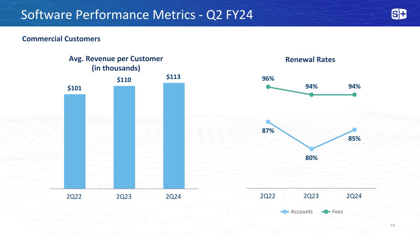 Avg. Revenue per Customer (in thousands) Software Performance Metrics - Q2 FY24 Commercial Customers Renewal Rates 14 $101 $110 $113 2Q22 2Q23 2Q24 87% 80% 85% 96% 94% 94% Accounts Fees 2Q22 2Q23 2Q24