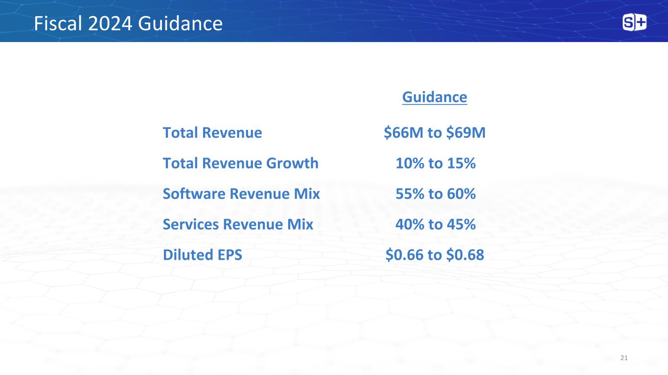 Fiscal 2024 Guidance 21 Guidance Total Revenue $66M to $69M Total Revenue Growth 10% to 15% Software Revenue Mix 55% to 60% Services Revenue Mix 40% to 45% Diluted EPS $0.66 to $0.68