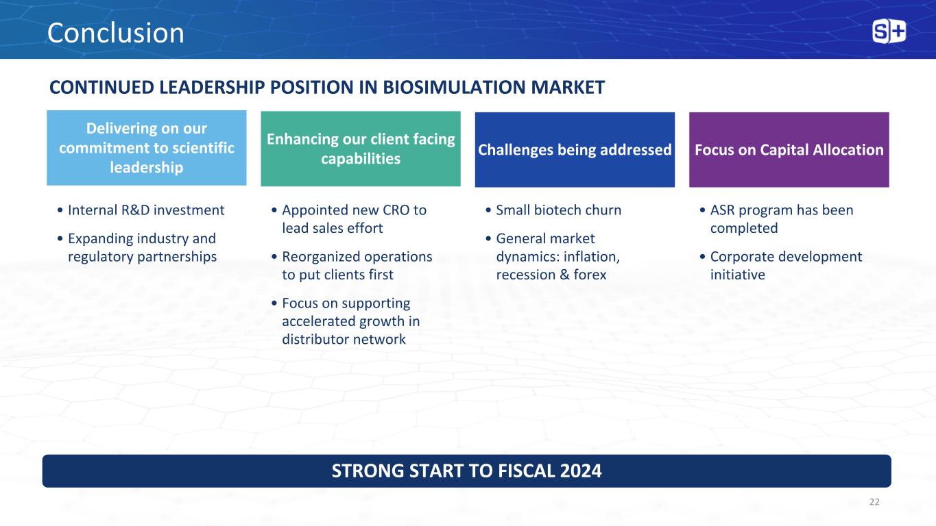 STRONG START TO FISCAL 2024 Delivering on our commitment to scientific leadership Challenges being addressed 22 • Internal R&D investment • Expanding industry and regulatory partnerships Enhancing our client facing capabilities Focus on Capital Allocation CONTINUED LEADERSHIP POSITION IN BIOSIMULATION MARKET Conclusion • Appointed new CRO to lead sales effort • Reorganized operations to put clients first • Focus on supporting accelerated growth in distributor network • Small biotech churn • General market dynamics: inflation, recession & forex • ASR program has been completed • Corporate development initiative