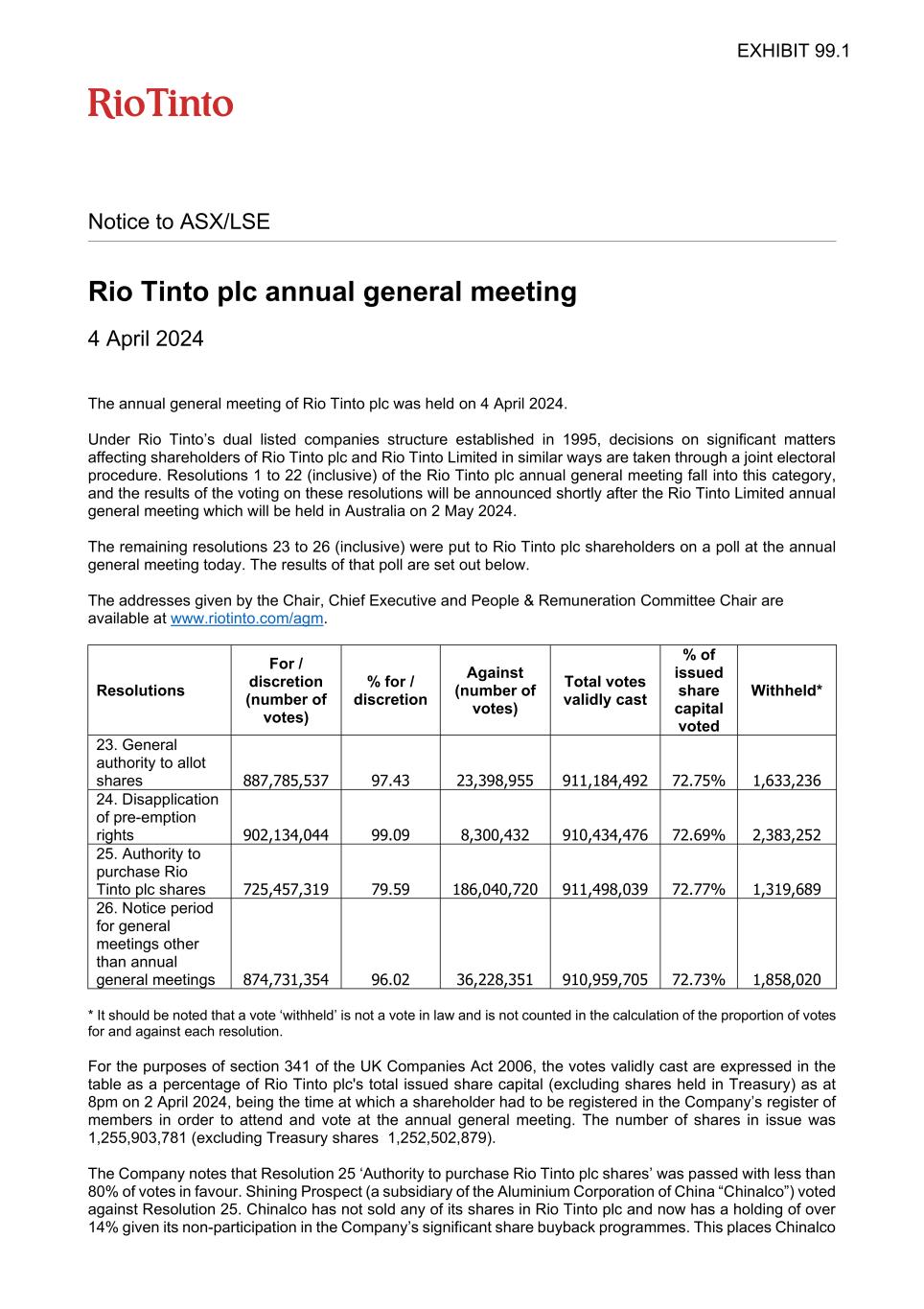 | Rio Tinto plc | Rio Tinto Limited |