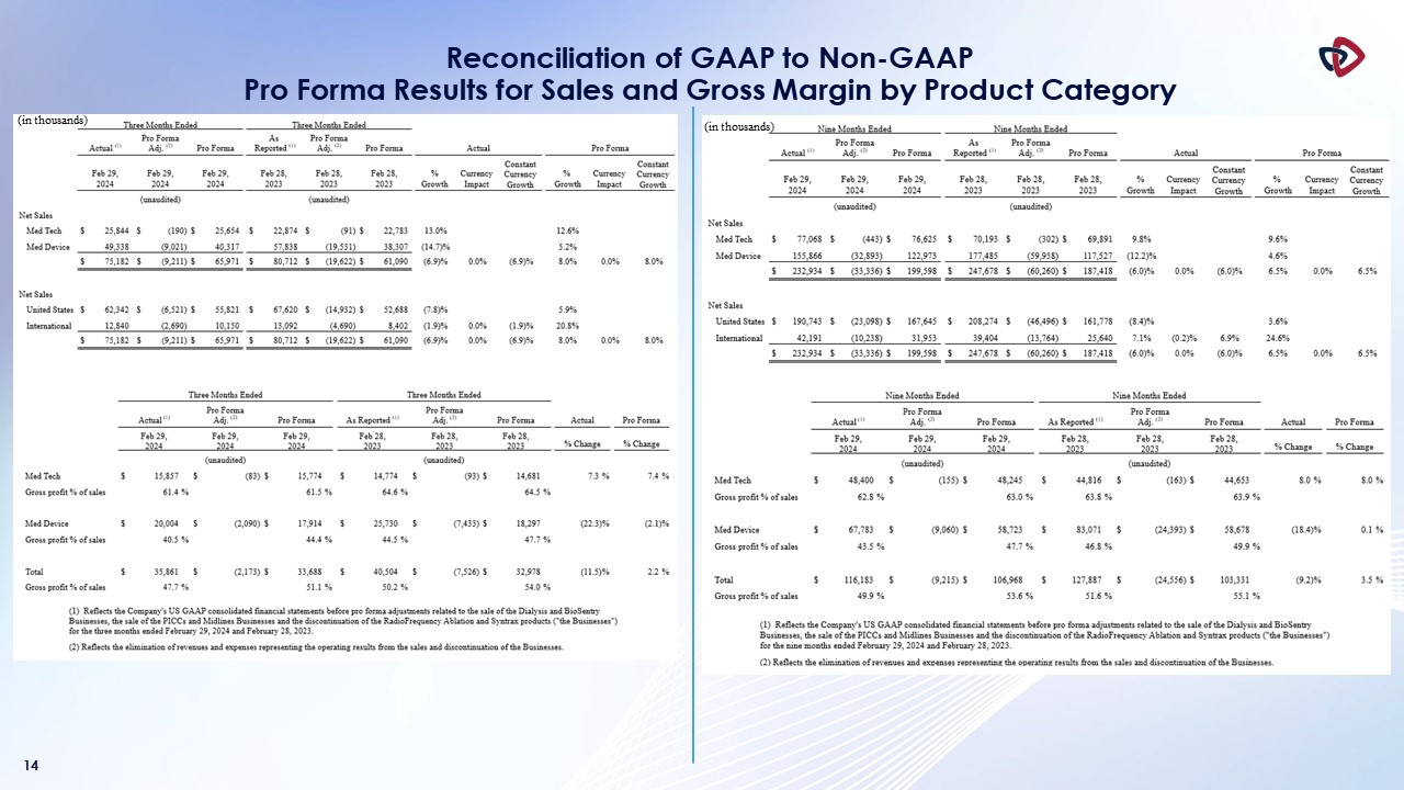 Pro forma Med Tech net sales of $25.7 million increased 12.6%