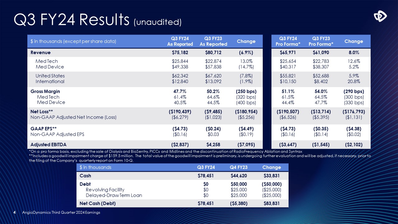 Completed the sale of its PICC and Midline product portfolios to Spectrum Vascular on February 15, 2024
