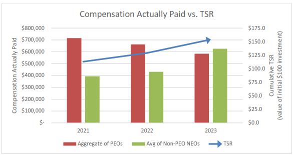 From 2022 to 2023, the SEC-defined “average compensation actually paid” to the other NEOs increased by $186,711 or 43.33%. This increase was caused primarily by the net increase in the year over year fair value of unvested restricted stock awards caused by the increase in the price of Middlefield’s stock from $27.40 per share at December 31, 2022 to $32.37 per share at December 31, 2023.