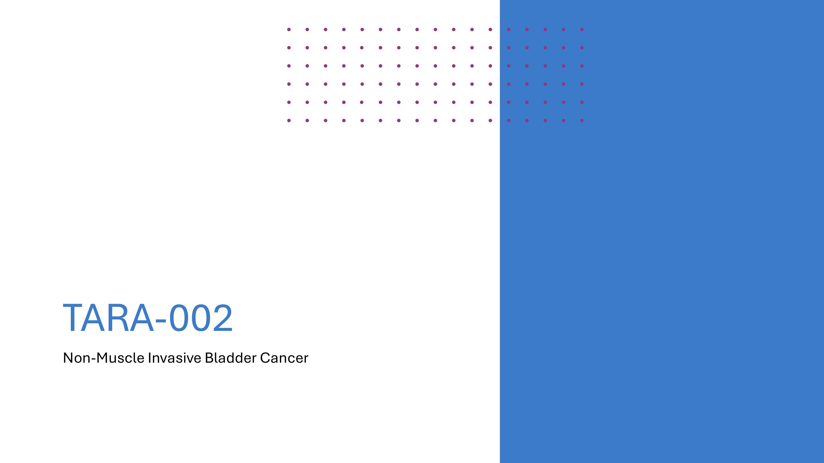 “These promising three-month results support the continued development of TARA-002 for patients with NMIBC for whom there are currently limited treatment options,” said Timothy Lyon, M.D., Associate Professor of Urology and the Urology Residency Program Director at Mayo Clinic in Florida, and TARA-002 study investigator. “Given our understanding that up to half of patients treated with intravesical immune therapies that do not initially respond can be salvaged with repeat induction, there is reason to believe that the promising three-month response rates shared today could be further improved through reinduction with TARA-002. This encouraging anti-tumor activity coupled with a favorable safety profile and mode of administration that is both convenient and familiar to urologists indicates that, if confirmed in future studies, TARA-002 could potentially play a meaningful role in NMIBC treatment in the future.”
