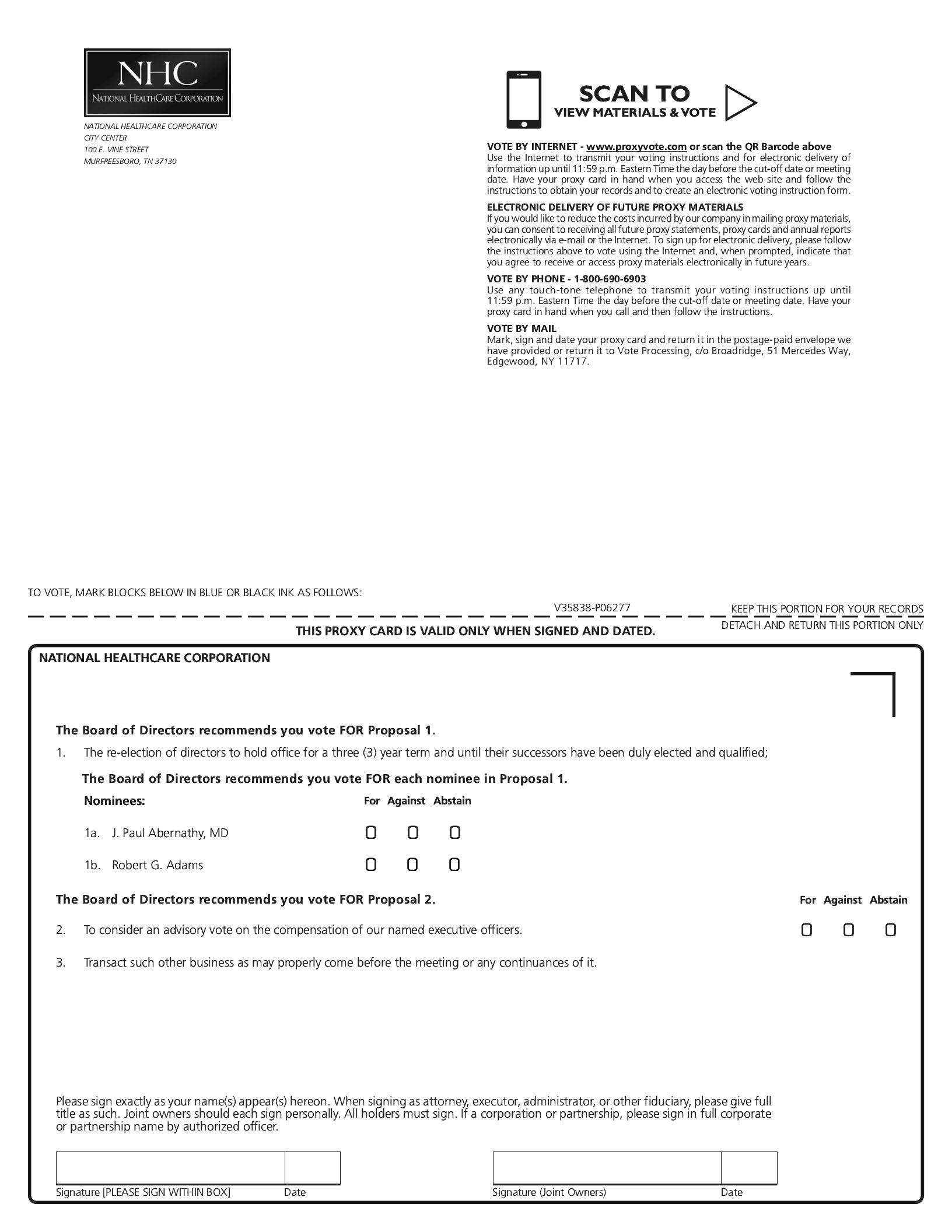 Mr. Robert G. Adams and Mr. W. Andrew Adams are both directors of NHI as well as NHC.