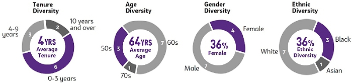 As Mondelēz International continues to execute its strategy, the Board is well-equipped to create long-term value for our shareholders. Our 11 director nominees collectively bring a myriad of professional and life experiences and skill sets to the Board, and they include four women and represent several national origins. One director nominee self-identifies as Asian, three director nominees self-identify as Black, and seven self-identify as white.