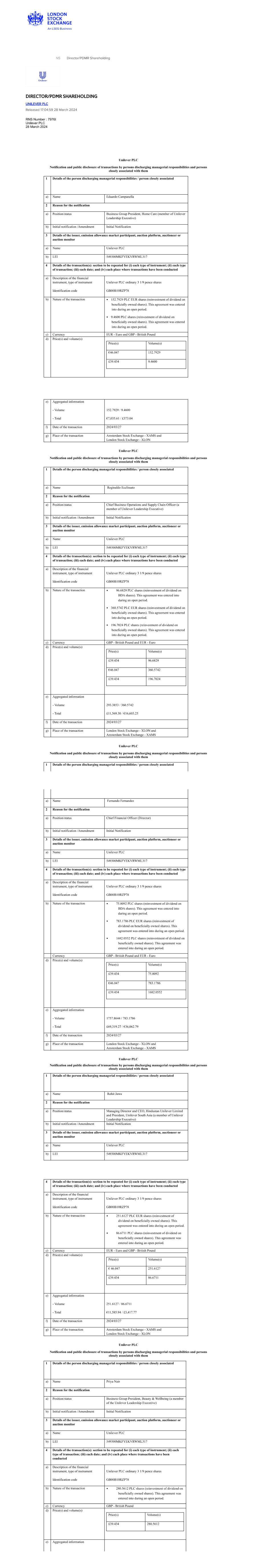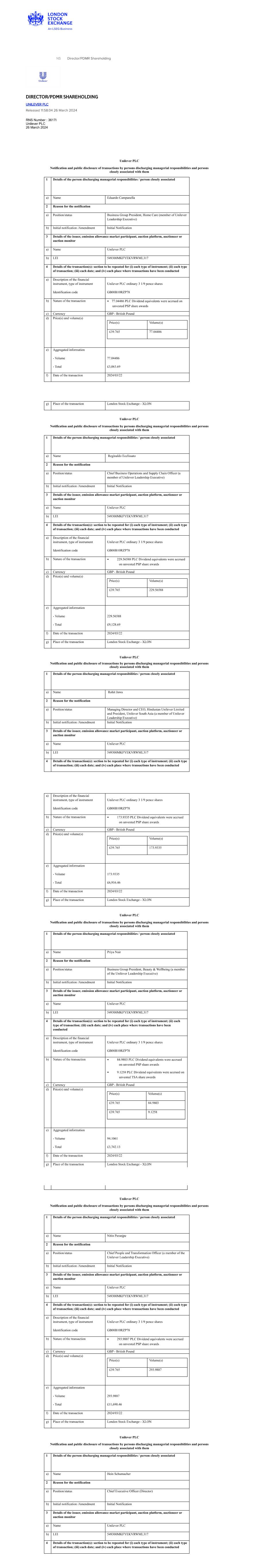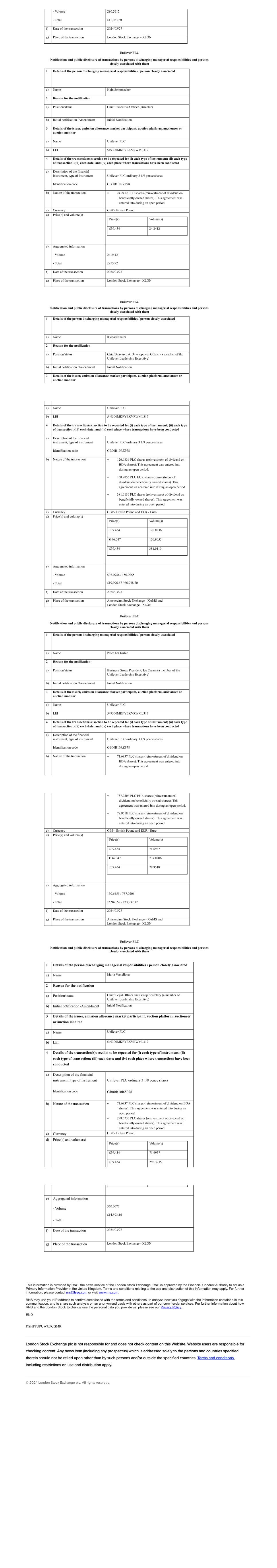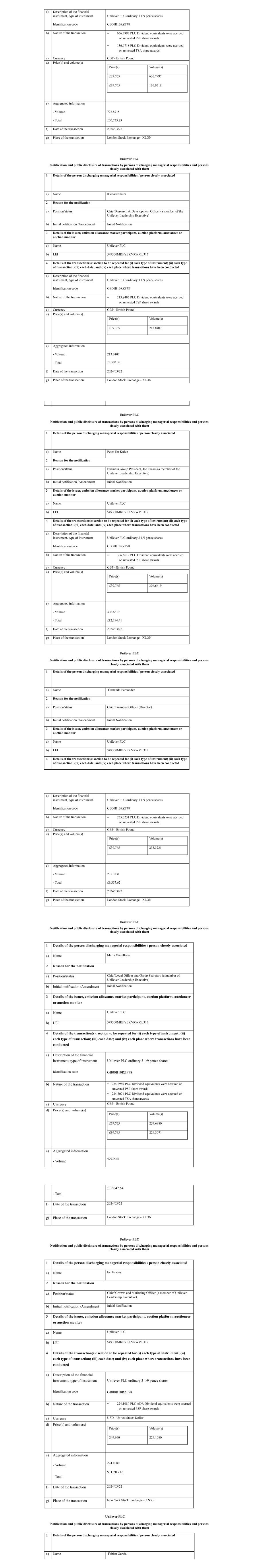 | UNILEVER PLC |