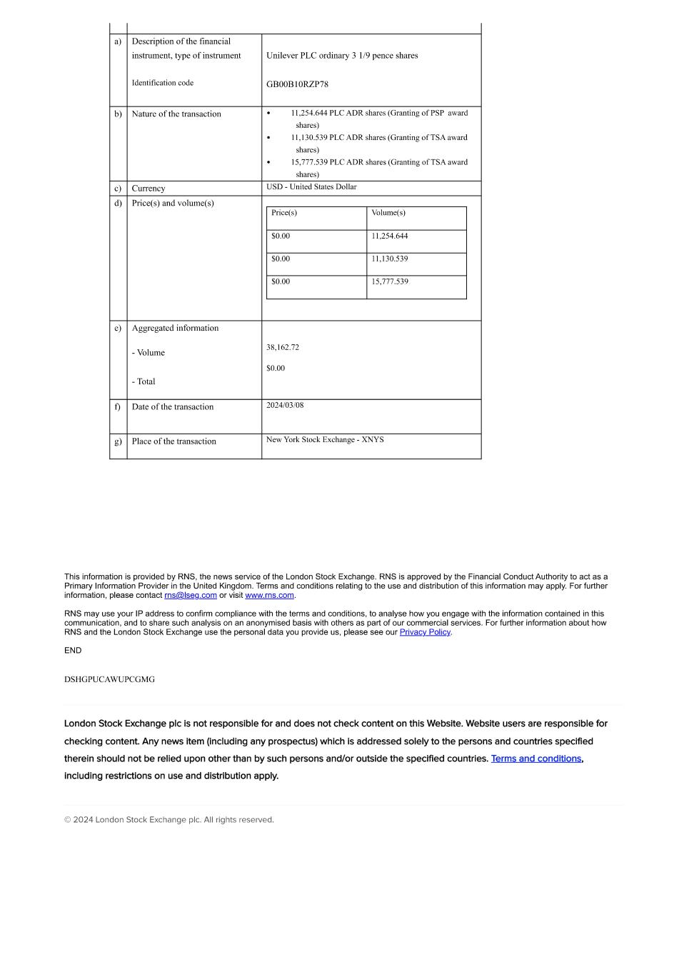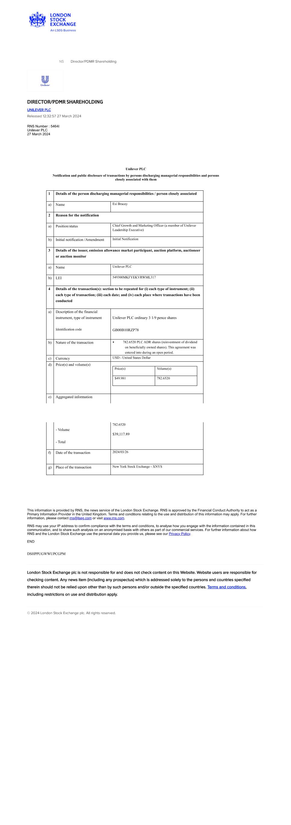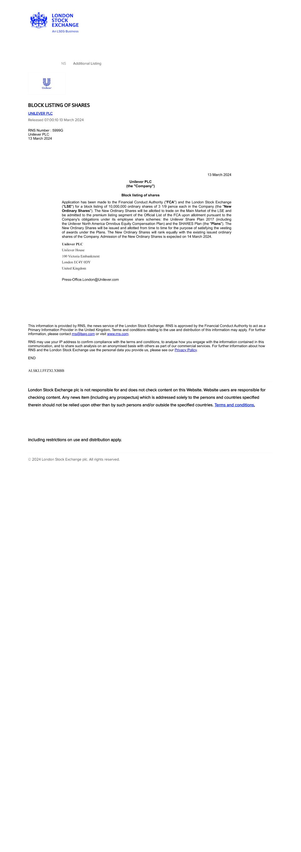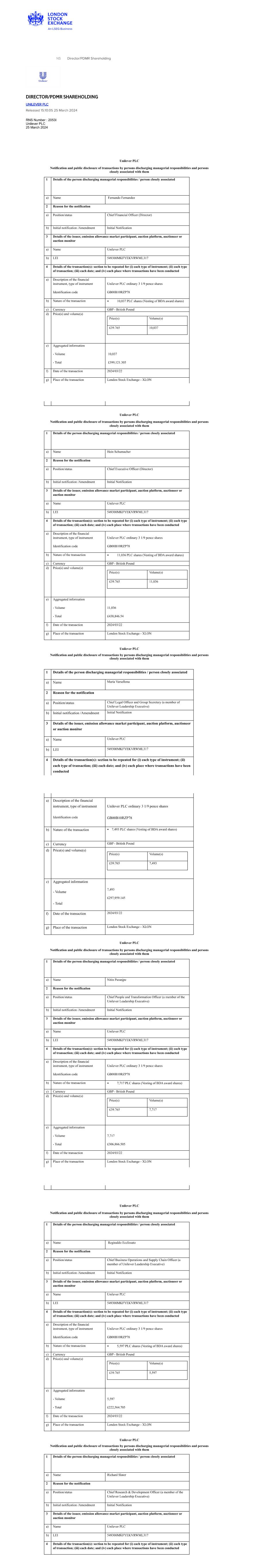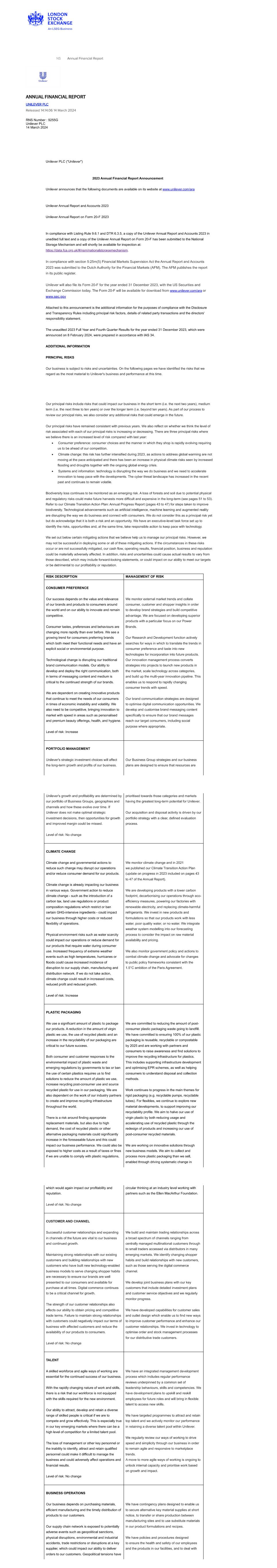 | UNILEVER PLC |