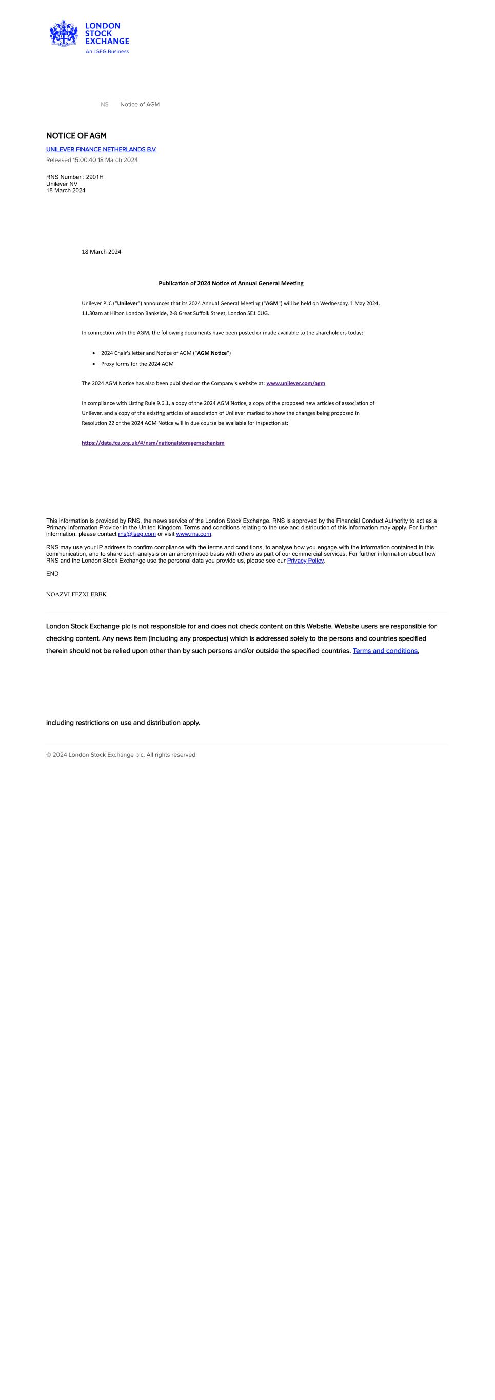| Exhibit | 99.4 | Stock exchange announcement dated | March 14, 2024 | Entitled | |