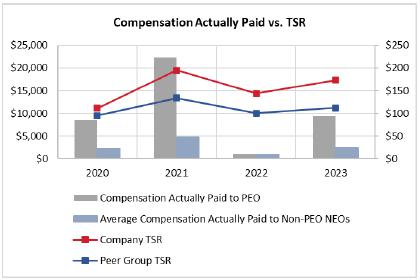 | NAMED EXECUTIVE OFFICER COMPENSATION Compensation Discussion & Analysis This Compensation Discussion & Analysis describes our executive compensation programs, including the oversight of such programs by our Compensation Committee and the rationale and processes used to determine the compensation for the Company’s NEOs and provides a detailed description of those programs. This Compensation Discussion & Analysis, which may include forward-looking statements, should be read together with the compensation tables and related disclosures that follow this section. Overview The Compensation Committee sets corporate goals and objectives with respect to executive compensation, evaluates performance against those goals and objectives, and determines the appropriate level and structure of executive compensation based on its evaluation. In carrying out these duties during 2023, the Compensation Committee considered analyses prepared by its independent compensation consultant FW Cook. Philosophy and Objectives We desire to build and maintain a superior executive management team to forge our business strategy and lead us to profitable growth. We believe that success in accomplishing these goals will, in part, depend on the effectiveness of our executive compensation programs, which are designed to compensate and reward NEOs for the achievement of corporate goals and desired business results and for their individual contributions in the execution of our business strategy. We strive for excellence in corporate and individual performance by tying a significant portion of overall executive compensation to the achievement of our corporate goals. The Compensation Committee believes that the most effective executive compensation programs are designed to reward the achievement of specific annual, long-term, and strategic goals that align executives’ interests with those of the shareholders by rewarding performance above established goals, with the ultimate objective of improving shareholder value. Executive Compensation Goals Attract and retain the best possible executive talent Link compensation to short-term and long-term performance goals Encourage superior performance for all individual NEOs 29 |