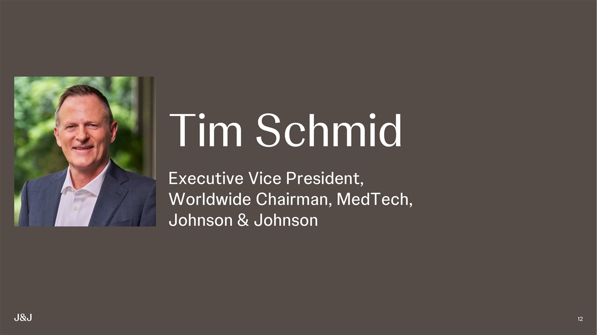 Tim Schmid Executive Vice President, Worldwide Chairman, MedTech, Johnson & Johnson 12