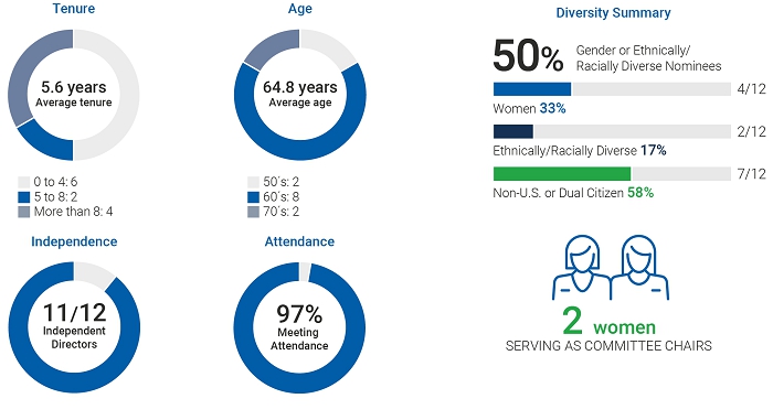 ELECTING A DIVERSE AND QUALIFIED BOARD The Board is pleased to introduce our new director nominee, Bridget Karlin, the Senior Vice President of Information Technology, Services & Operations, at Kaiser Permanente, one of the largest not-for-profit health care systems in the U.S. Ms. Karlin brings over 30 years of experience in enterprise-wide digital technology to our Board. If each of our nominees is elected, four of our twelve directors will be women and fifty percent of our Board will be gender, ethnically, or racially diverse.