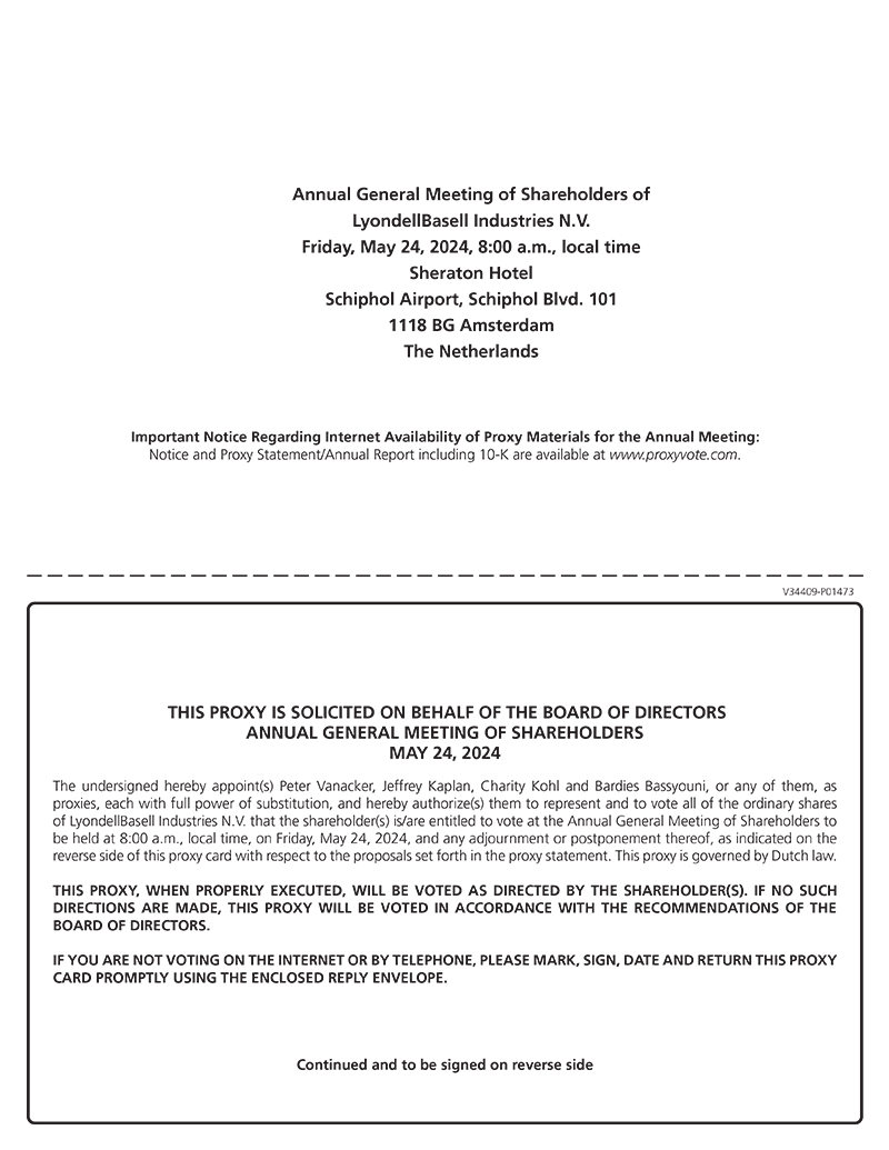 On behalf of the Board of Directors of LyondellBasell Industries N.V. (“LYB” or the “Company”), we are pleased to present our 2024 proxy statement.