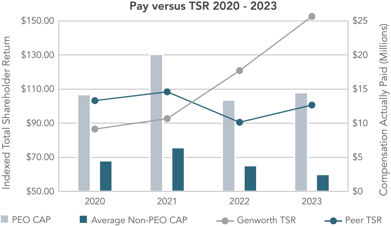Thanks to the commitment and diligence of our management team and workforce, Genworth made significant progress against our three strategic priorities last year. We continued to make strong progress on reducing the tail risk on our legacy long-term care insurance book of business through our Multi-Year Rate Action Plan. We launched the CareScout Quality Network, advancing our goal to leverage Genworth’s long-term care insurance (LTC) expertise to develop innovative aging care solutions. And we returned significant value to shareholders through share repurchases, having repurchased approximately $295 million of shares and expanded the scope of the program by an additional $350 million in 2023. This progress drove a strong Total Shareholder Return (TSR) of 27.7% over the course of the year. The Board is pleased with this progress and remains confident in the strategic direction of the company. |