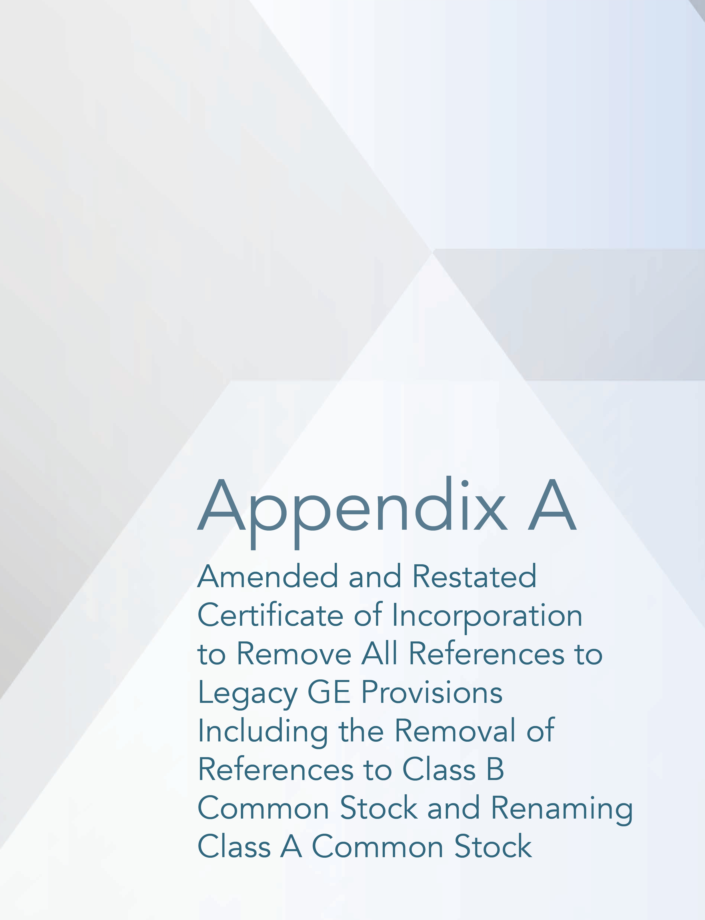 | 4. | Approval of an Amended and Restated Certificate of Incorporation to Remove All References to Legacy GE Provisions Including the Removal of References to Class B Common Stock and Renaming Class A Common Stock. | ☐ | ☐ | ☐ | |||