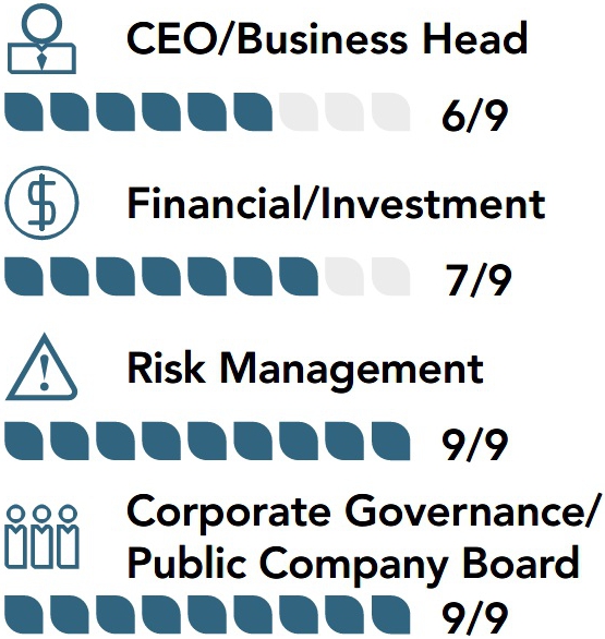 expertise in financial services, business leadership, risk management, corporate governance, healthcare, and regulatory matters,