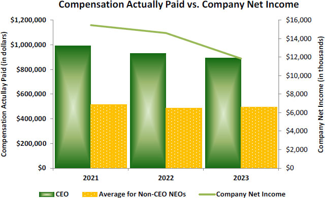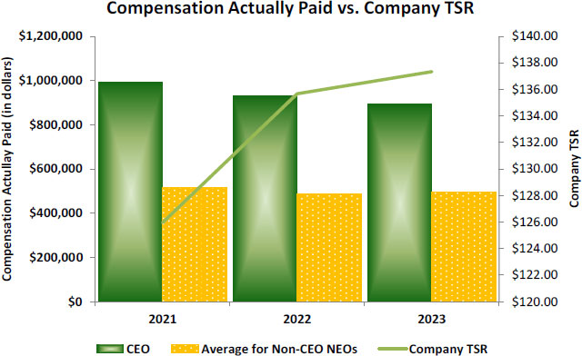 | (2) | On February 21, 2023, each non-employee director was granted 690 shares of restricted stock as part of the overall board compensation plan. The shares were valued at $20.29 per share and were unvested as of December 31, 2023. The shares fully vested on January 1, 2024. The value of restricted stock grants shown above equals the grant date fair value in accordance with FASB ASC Topic 718. |
