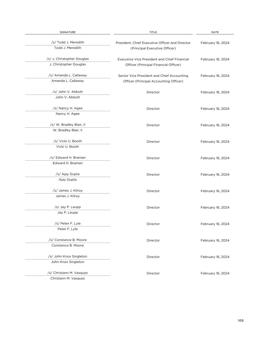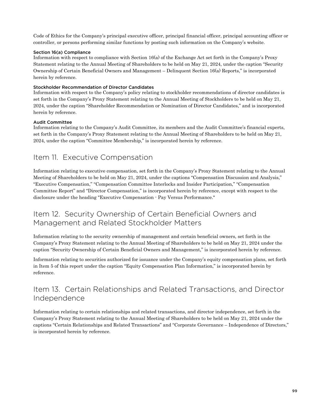 Item 9B. Other Information During the year ended December 31, 2023, no director or officer of the Company adopted or terminated a "Rule 10b5-1 trading agreement" or "non-Rule 10b5-1 trading agreement," as each term is defined in Item 408(a) of Regulation S-K. Item 9C. Disclosure Regarding Foreign Jurisdictions that Prevent Inspections Not applicable. 97