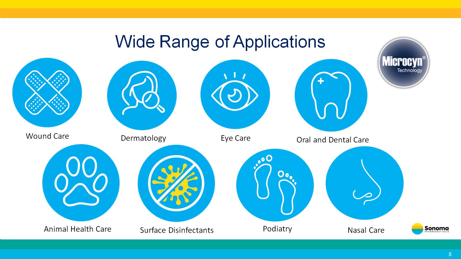Wide Range of Applications 5 Wound Care Dermatology Eye Care Oral and Dental Care Animal Health Care Surface Disinfectants Podiatry Nasal Care