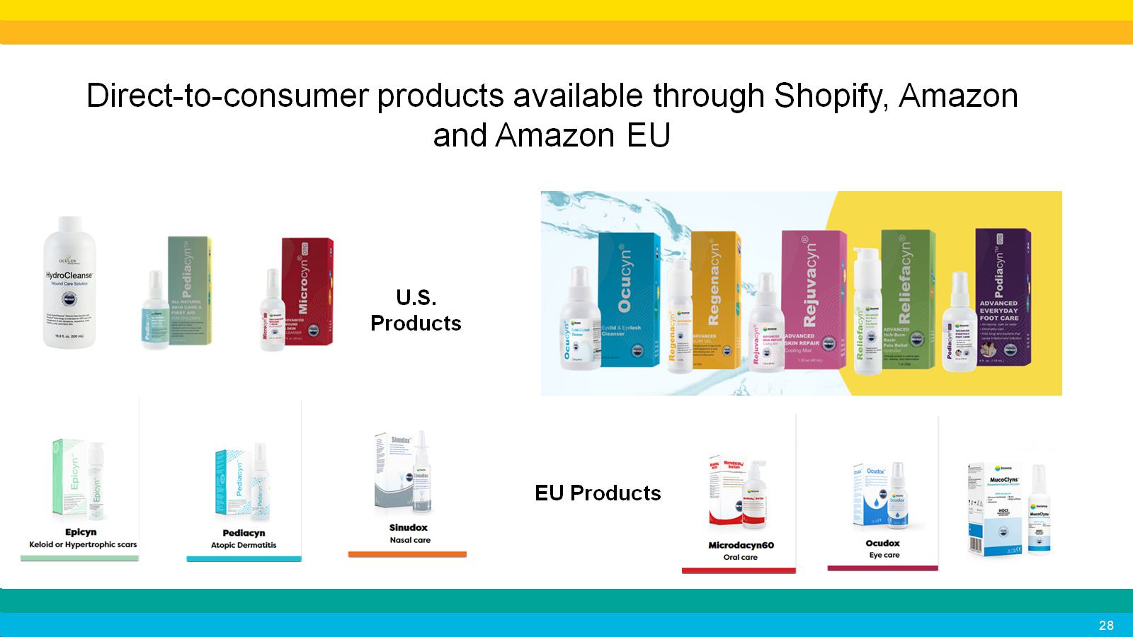 Direct - to - consumer products available through Shopify, Amazon and Amazon EU U.S. Products EU Products 28