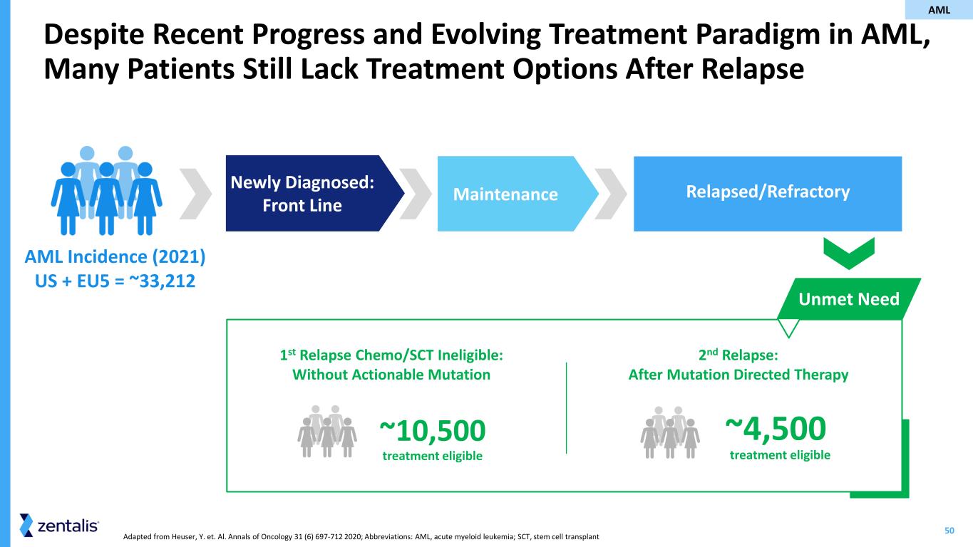50 Adapted from Heuser, Y. et. Al. Annals of Oncology 31 (6) 697-712 2020; Abbreviations: AML, acute myeloid leukemia; SCT, stem cell transplant Despite Recent Progress and Evolving Treatment Paradigm in AML, Many Patients Still Lack Treatment Options After Relapse 1st Relapse Chemo/SCT Ineligible: Without Actionable Mutation 2nd Relapse: After Mutation Directed Therapy AML Incidence (2021) US + EU5 = ~33,212 Relapsed/Refractory ~10,500 treatment eligible Maintenance Newly Diagnosed: Front Line ~4,500 treatment eligible Unmet Need AML