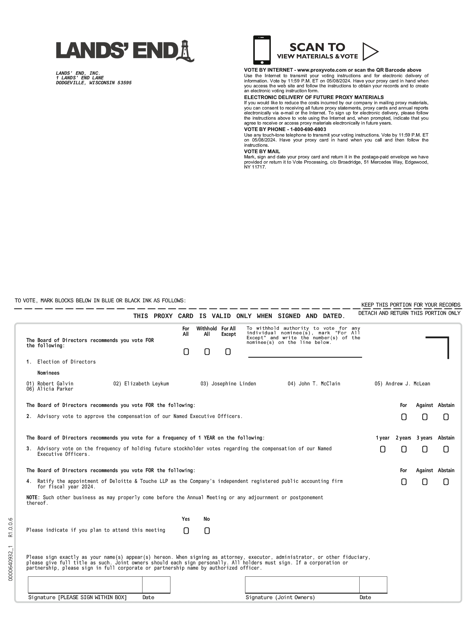 Item 1 is the election of six nominees to our Board: Robert Galvin, Elizabeth Leykum, Josephine Linden, John T. McClain, Andrew J. McLean and Alicia Parker. Alicia Parker is being nominated for the first time, and each of the other nominees is a current member of the Board. If elected, each nominee will hold office until the next annual meeting or until their successor is elected and qualified, or earlier death, resignation, disqualification or removal. The Board currently has seven members: Robert Galvin, Elizabeth Leykum, Josephine Linden, John T. McClain, Andrew J. McLean, who are standing for reelection, as well as Jignesh Patel and Jonah Staw, who are not standing for reelection. By resolution of the Board in accordance with the Company’s Bylaws, effective upon the 2024 Annual Meeting, the size of the Board will be reduced to six members. We wish to thank Jignesh Patel and Jonah Staw, who have each served on the Board since 2014, for their many years of distinguished service on the Board and their dedication to the Company.