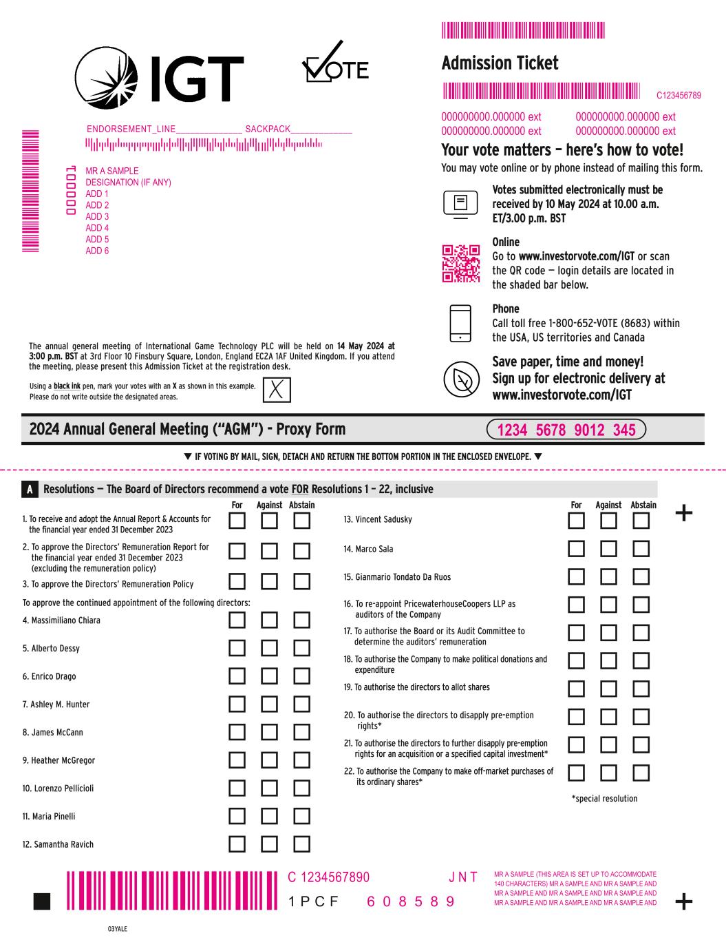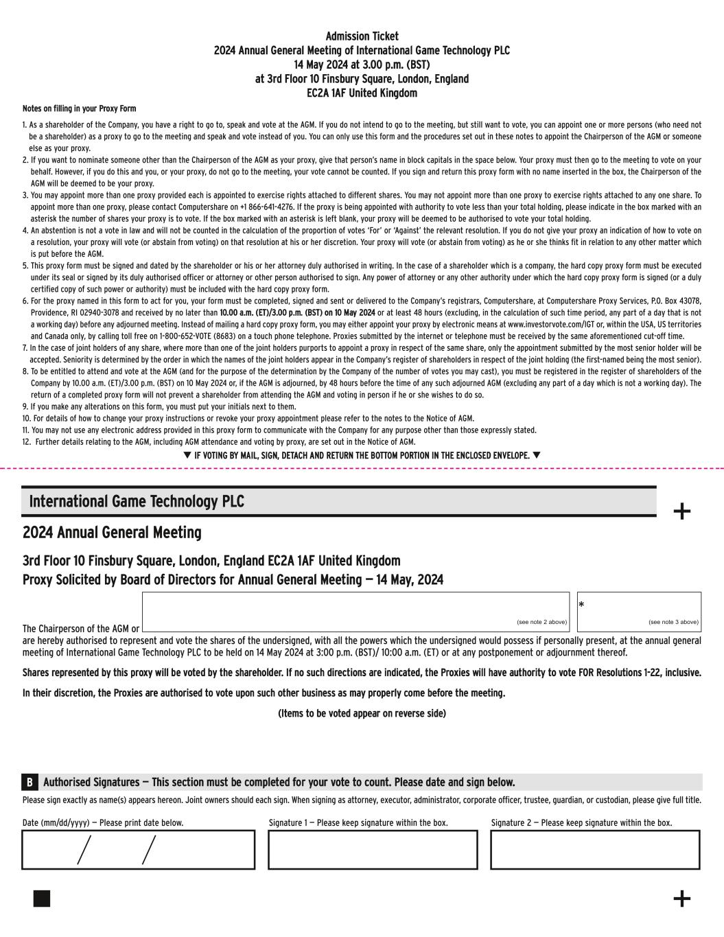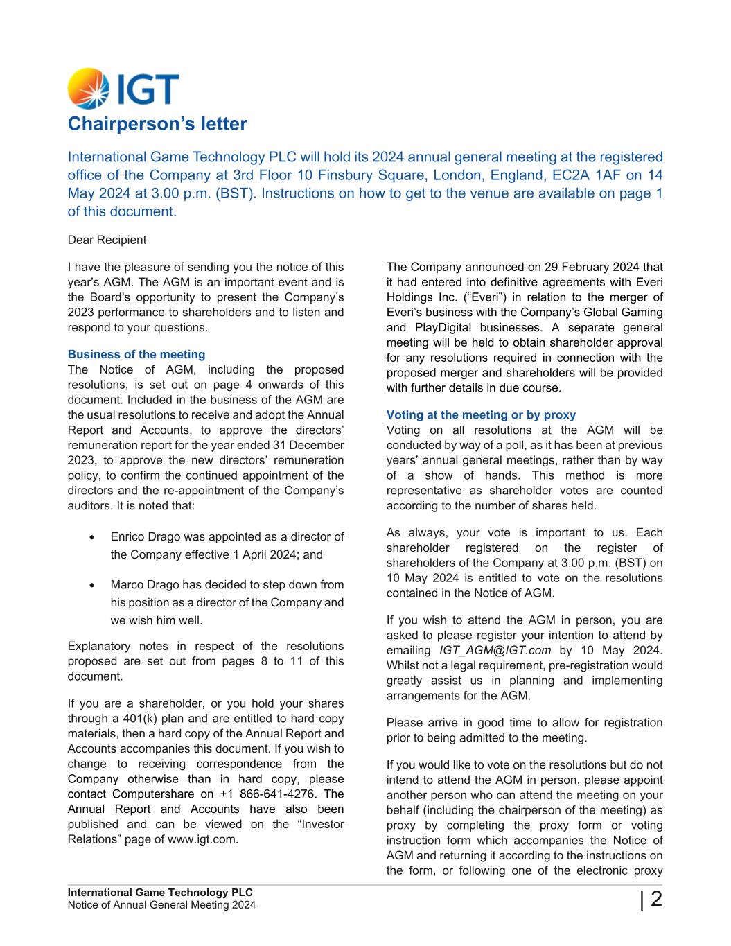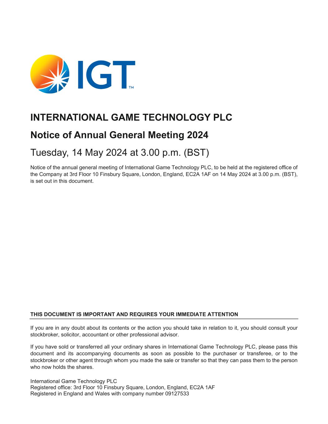 2024 Annual General Meeting of International Game Technology PLC