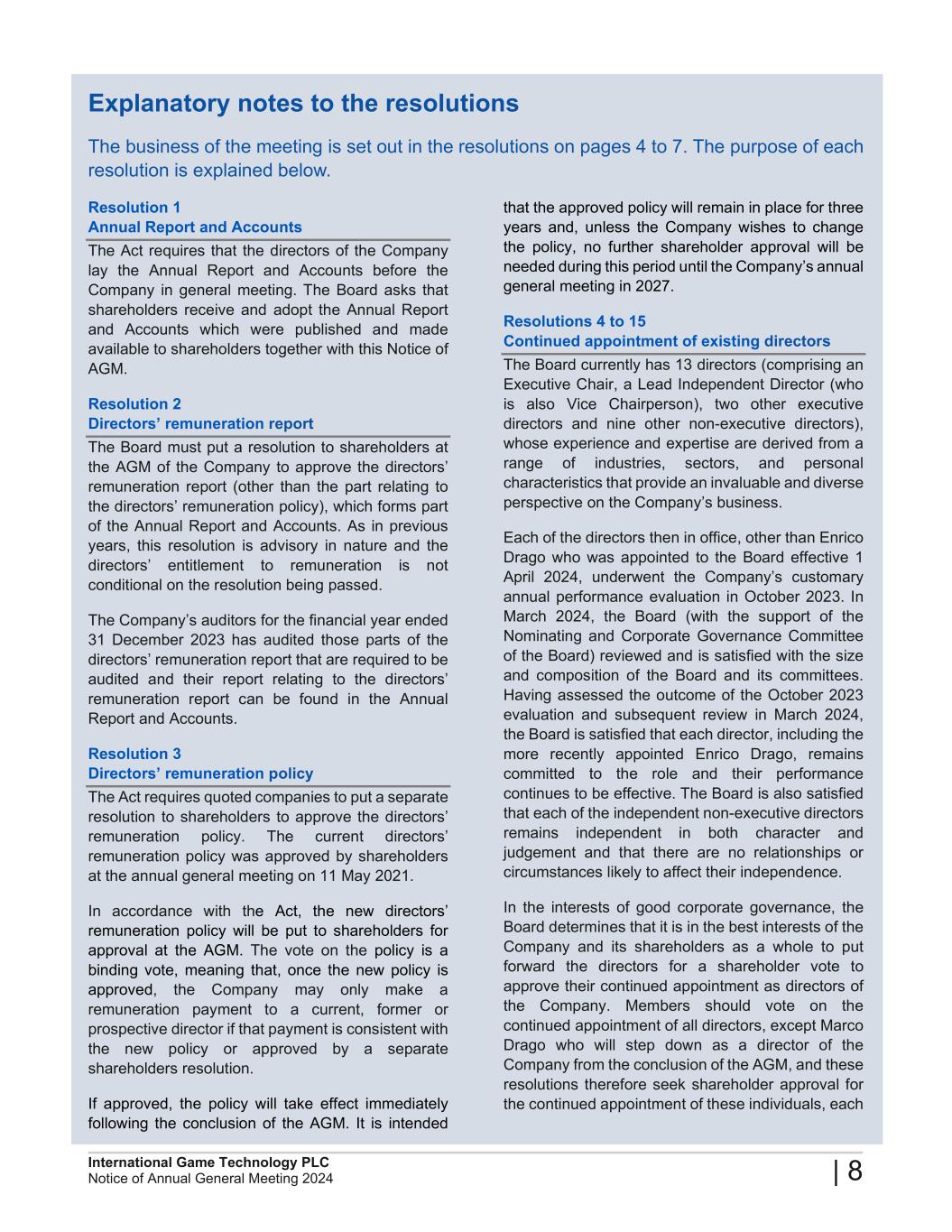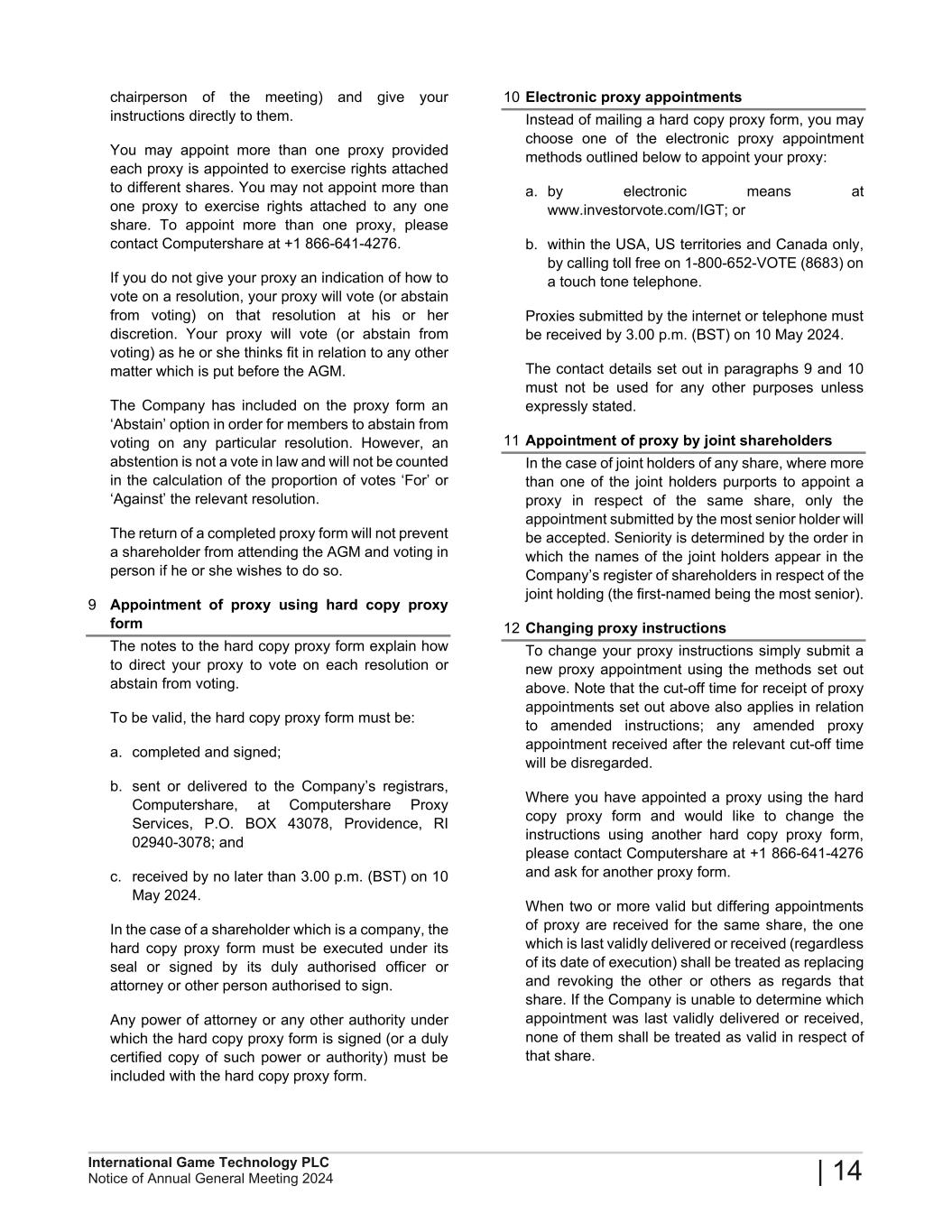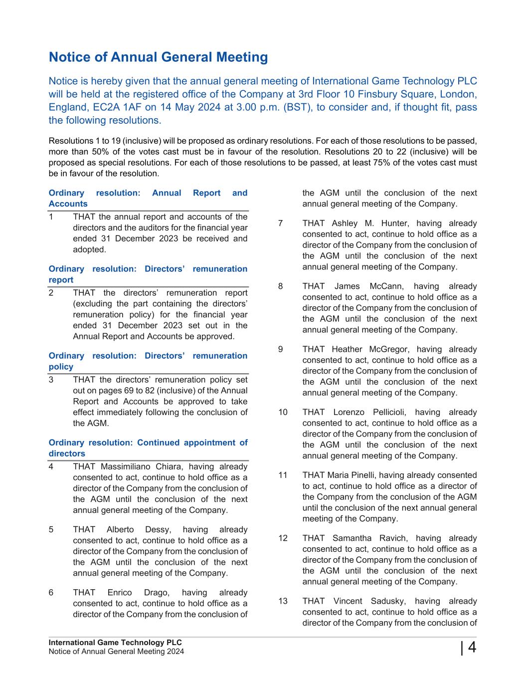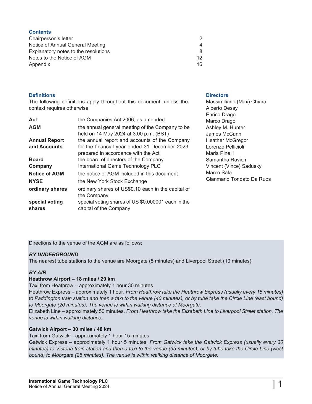 2024 Annual General Meeting of International Game Technology PLC
