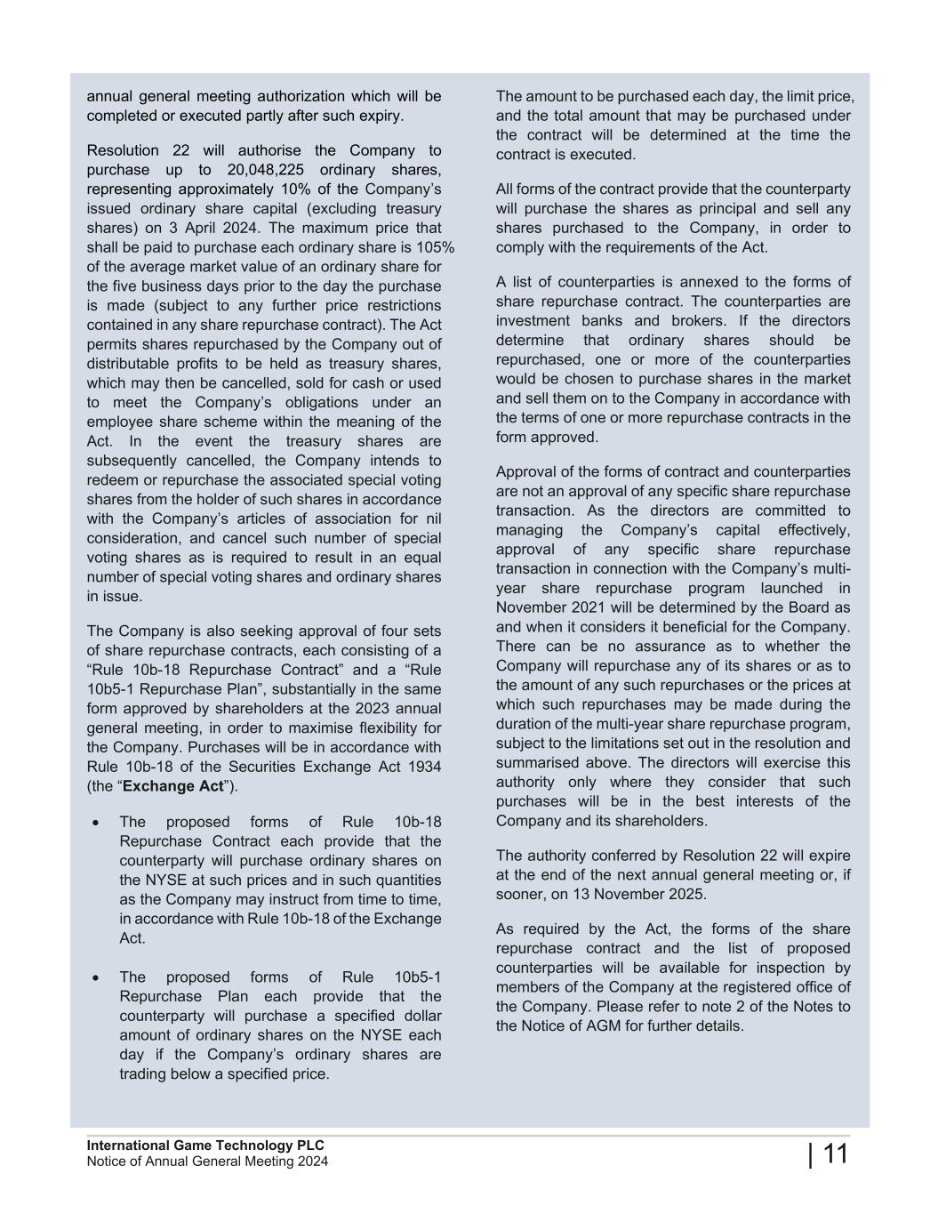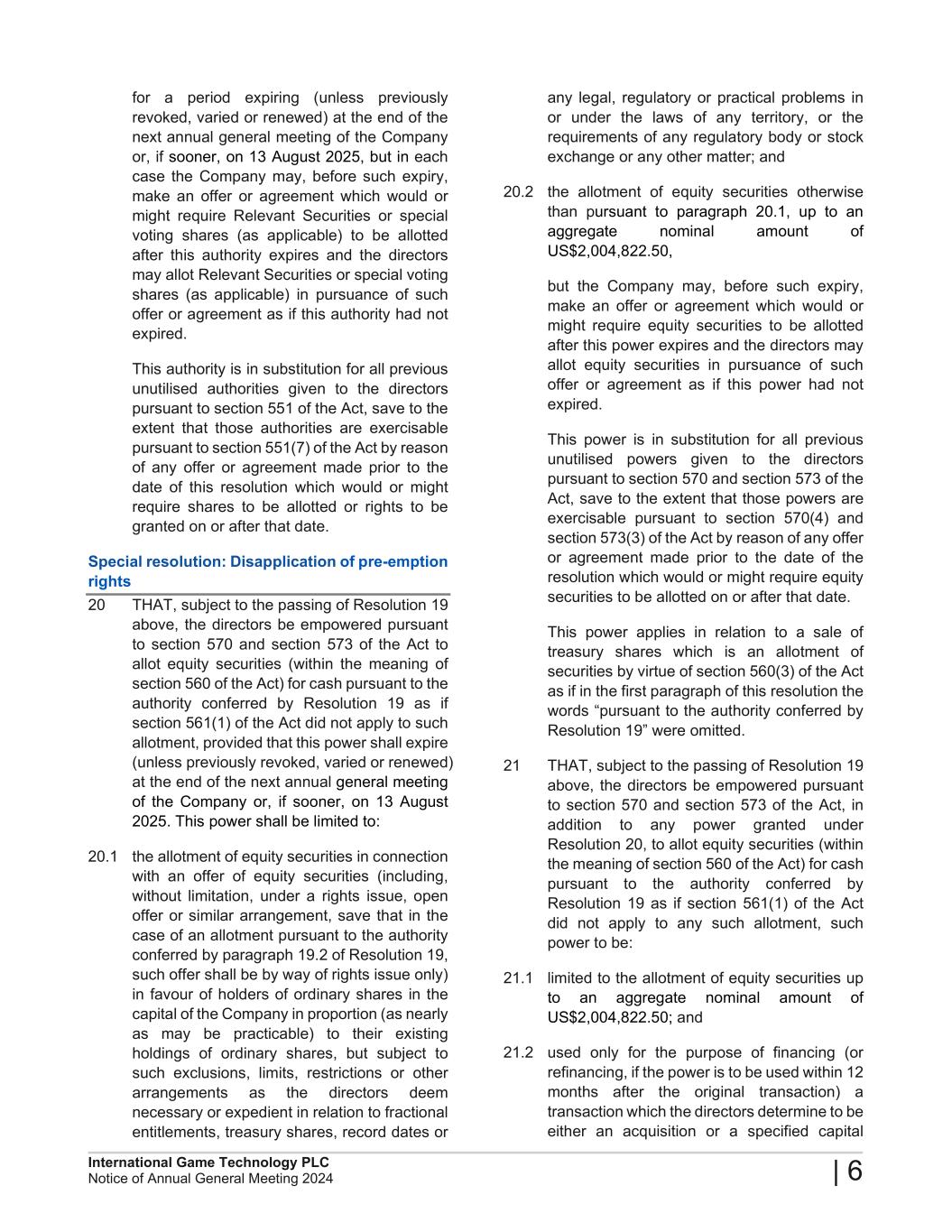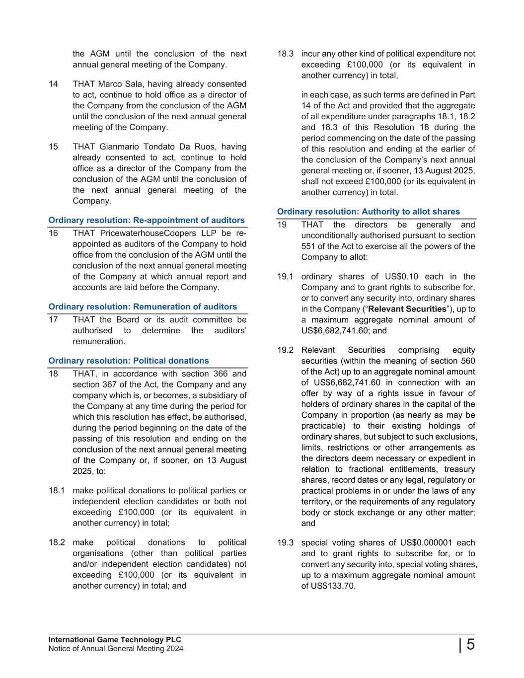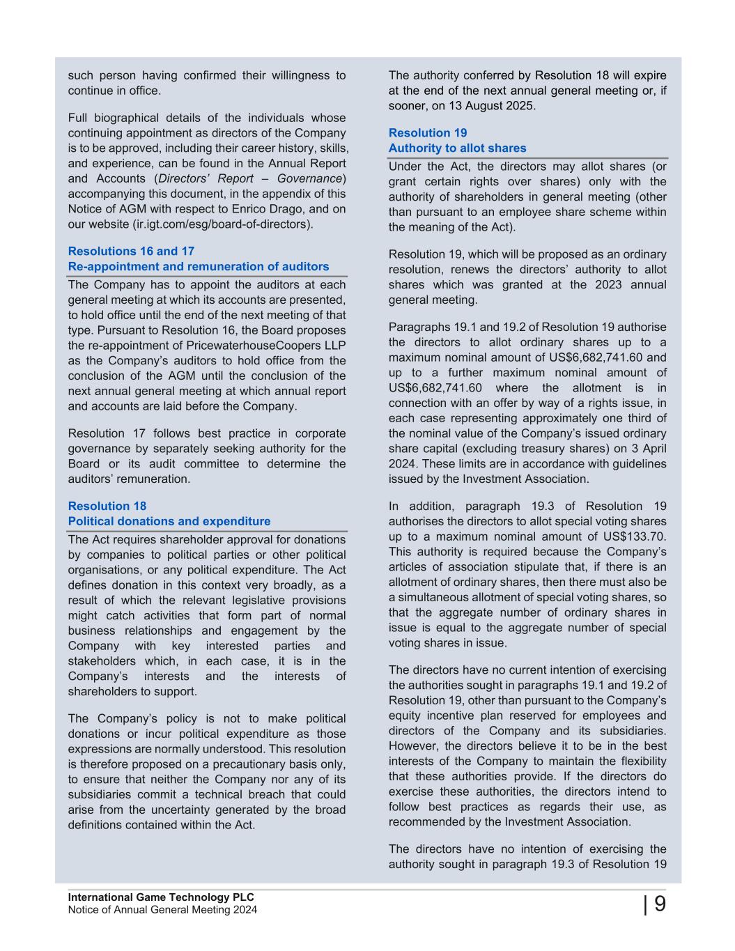 2024 Annual General Meeting of International Game Technology PLC