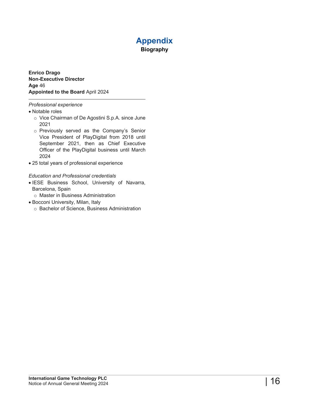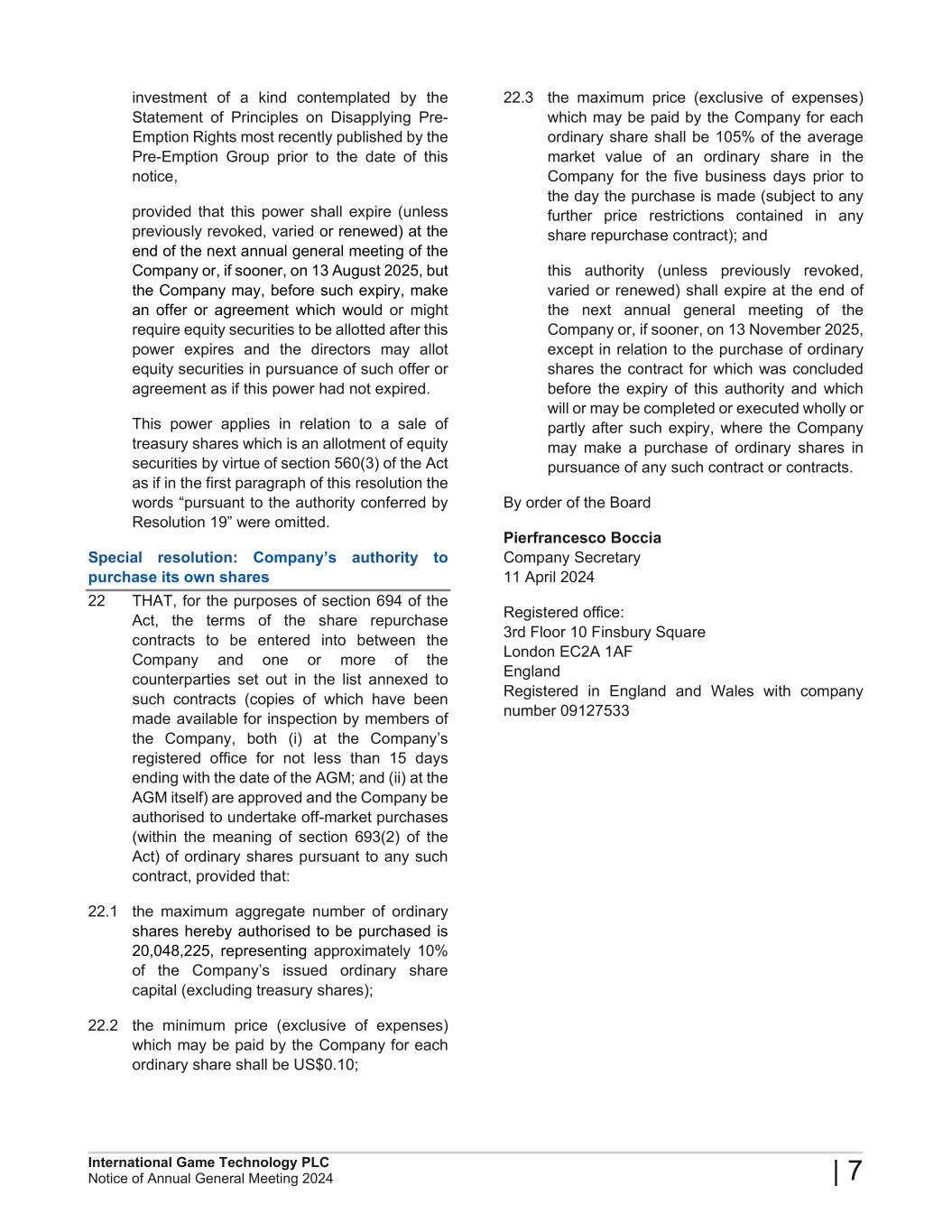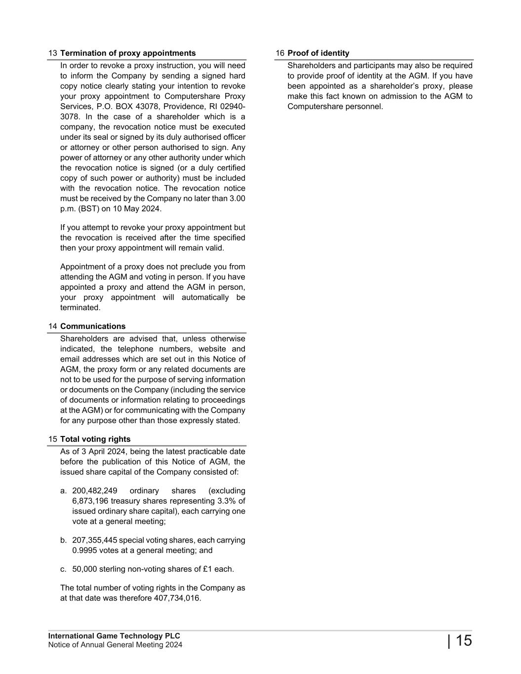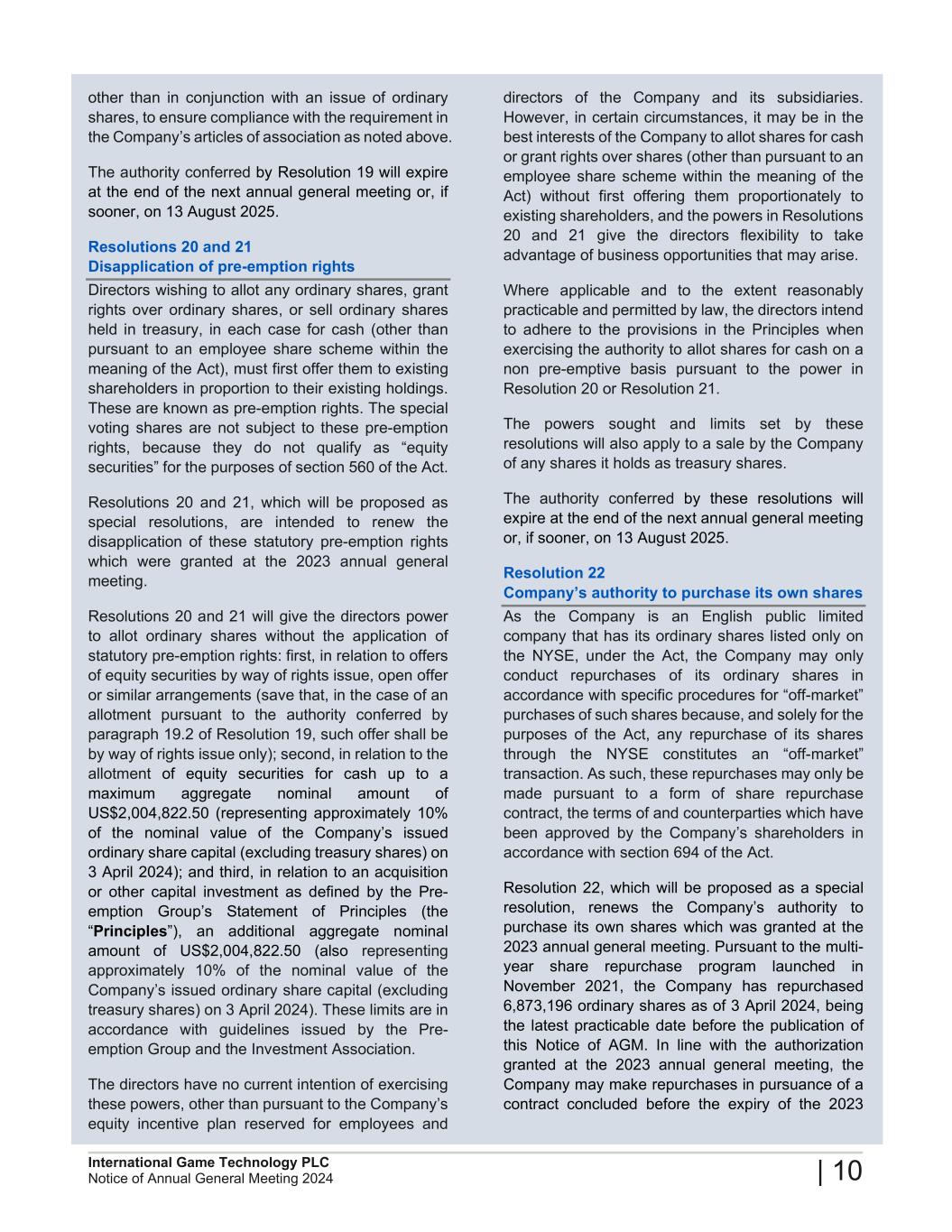 2024 Annual General Meeting of International Game Technology PLC